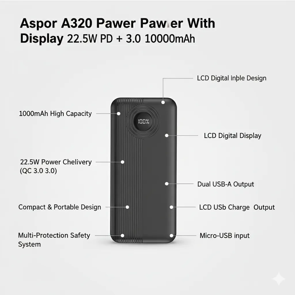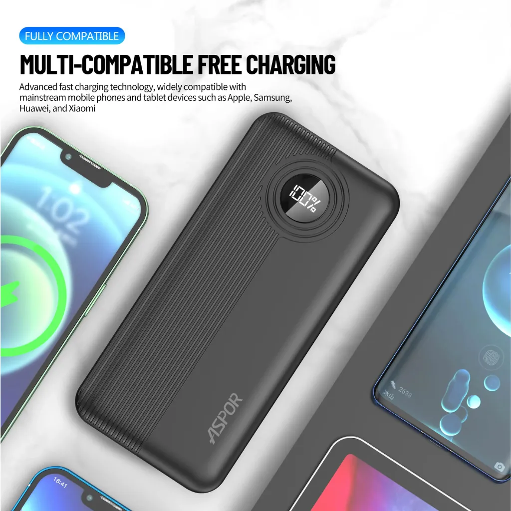 The Aspor A320 Power Bank combines sleek design with high-performance charging.