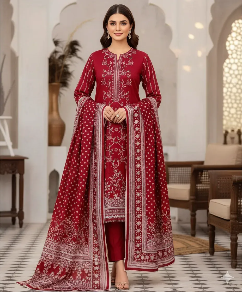 Assorted Embroidered Winter Collection | Unstitched Linen & Khaddar 3-Piece Suits with Digital Printed Dupatta
