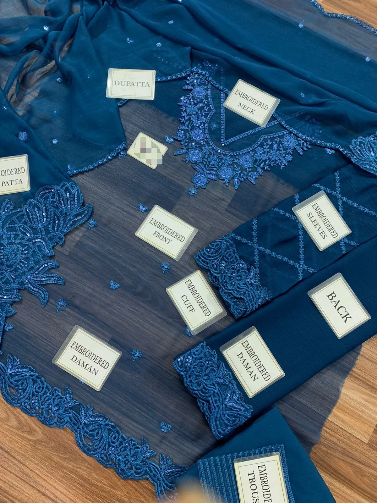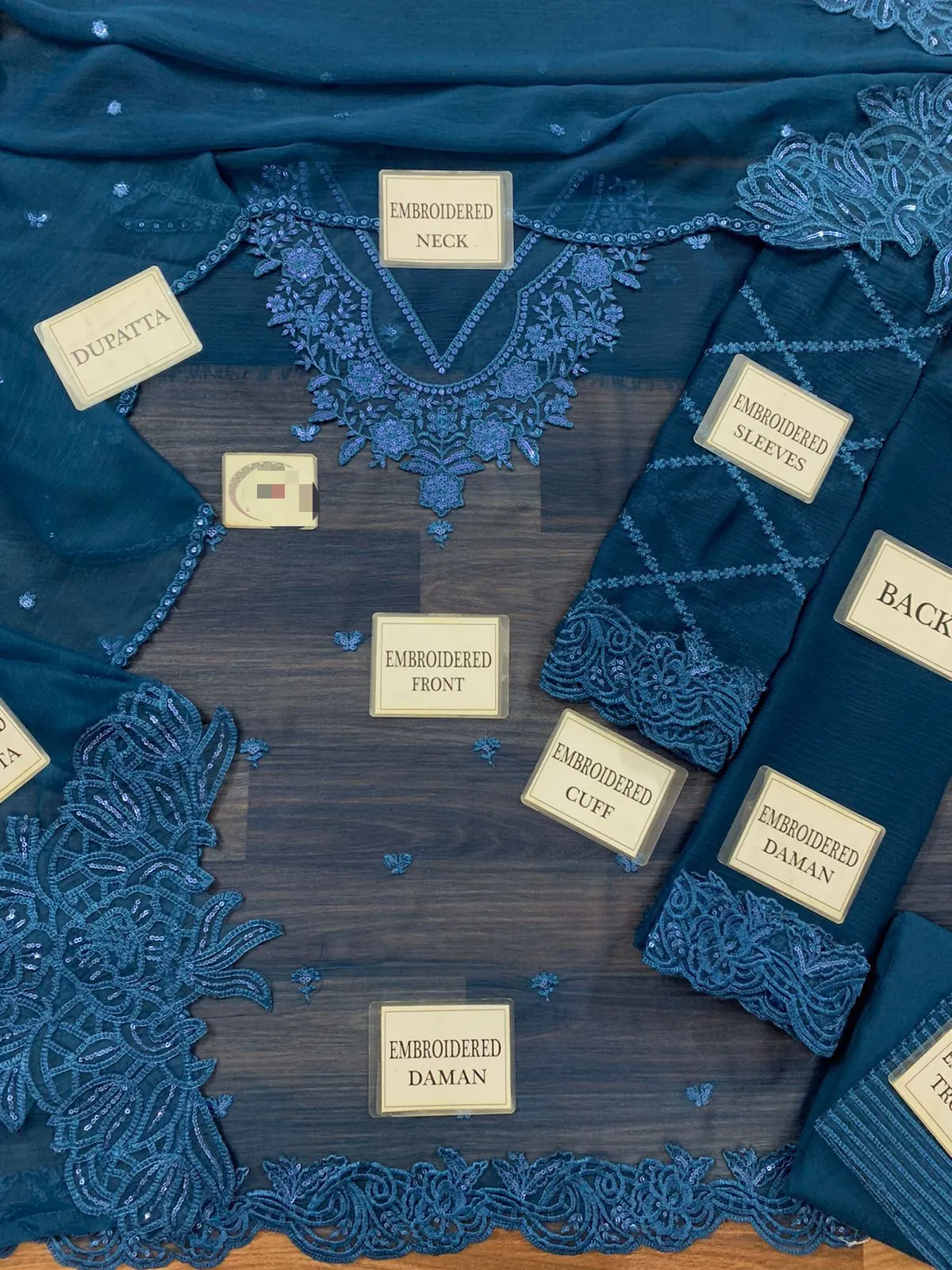 Introducing the spectacular AZURE (LAGOONA) Luxury Chiffon Festive Collection 2025/26 unstitched 3-piece suit. This suit is a masterpiece of craftsmanship, designed for high-end formal and festive occasions.