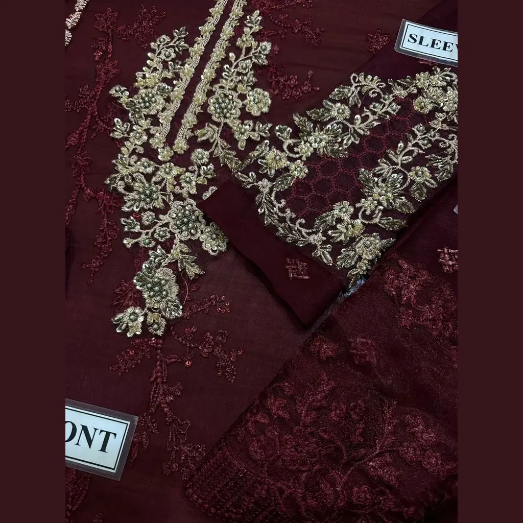 Step into timeless elegance with the AZURE chiffon embroidered luxury unstitched 3pc suit. Featuring adda work, sequin embroidery, pearl embellishments, and a chiffon embroidered dupatta, this masterpiece is perfect for festive wear, weddings, and formal occasions. Designed with intricate craftsmanship, it blends sophistication with luxury fashion.