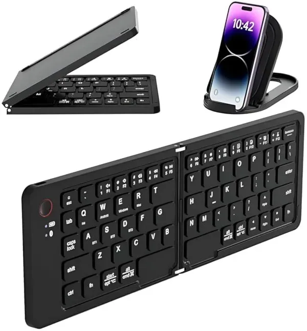 B023 11-Inch Foldable & Rechargeable Bluetooth Keyboard (Black) – Portable Wireless Keyboard with Phone Stand, Bluetooth 5.1, Compatible with iOS, Android & Windows