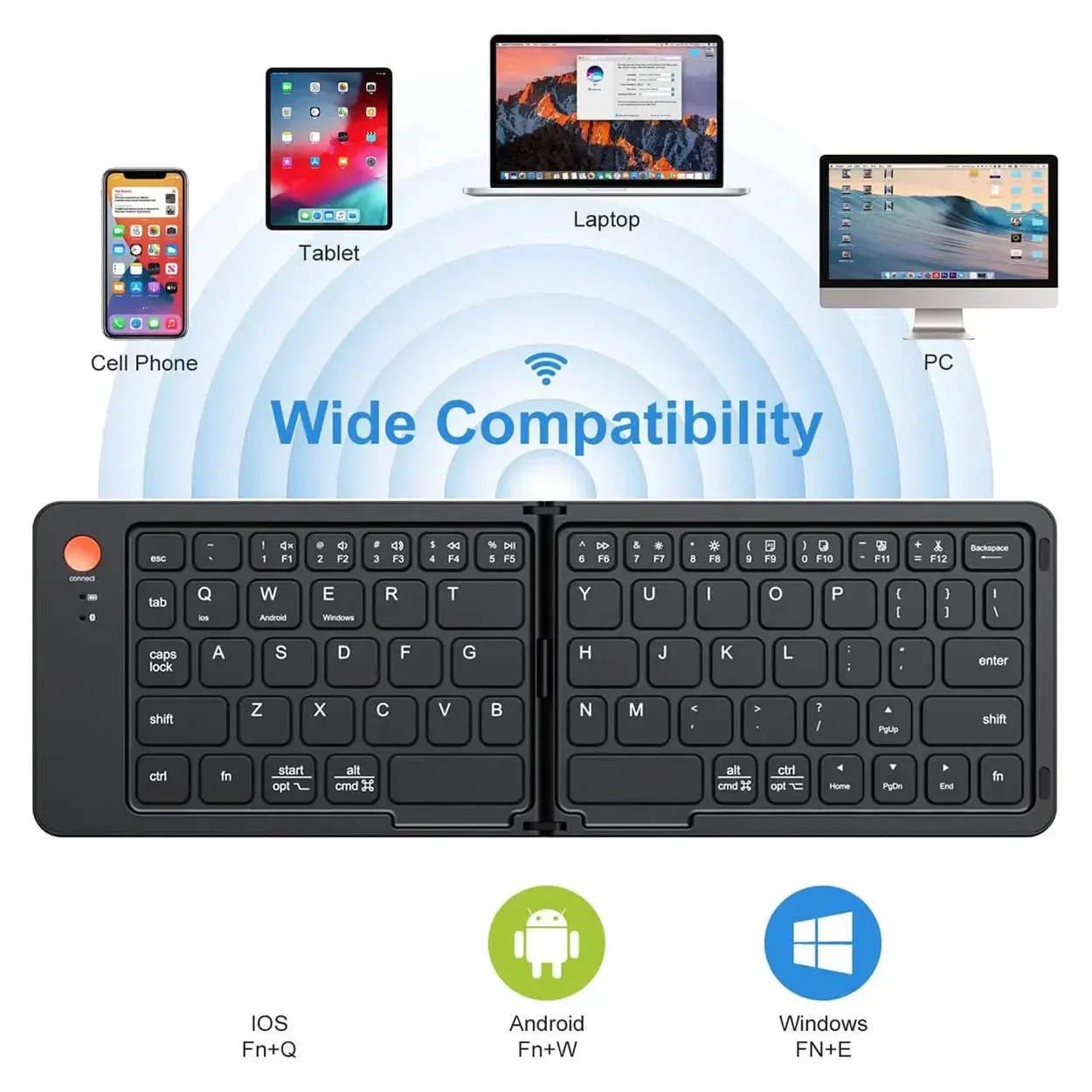 With Bluetooth 5.1 connectivity, the B023 keyboard ensures a fast and stable wireless connection across iOS, Android, and Windows devices — perfect for tablets, smartphones, and laptops. Its scissor-switch keys offer smooth, quiet, and precise typing, while the foldable, lightweight design makes it ideal for on-the-go use.