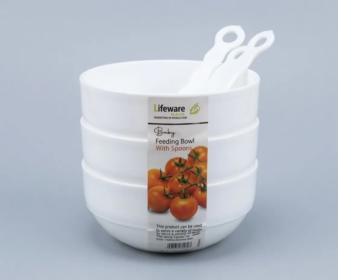 Baby Feeding Bowl with 2 Spoons - Durable and Safe Plastic Dish Set for Kids in different colors ( white , pink and multi )