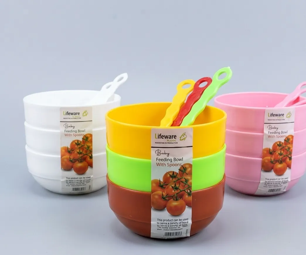 The set includes one high-quality, vibrant feeding bowl and two easy-grip spoons. Its smooth, rounded edges make it safe for babies, while the lightweight, non-toxic material ensures it can handle daily use. Available in fun, bright colors that keep babies engaged during mealtime, this bowl is easy to clean and perfect for everyday feeding.it is very low price in Pakistan ,