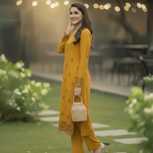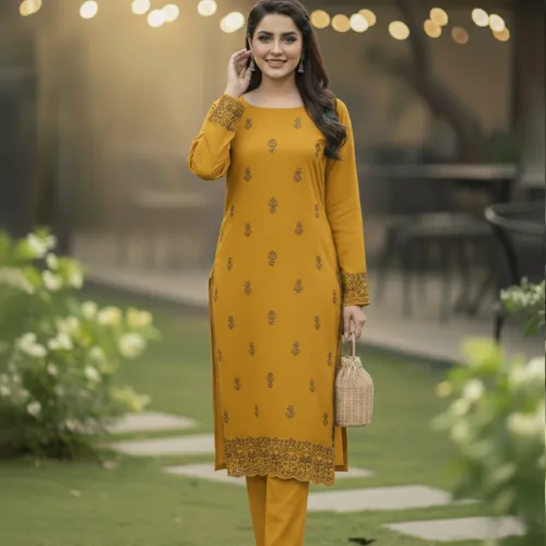 Fabric: The suit is tailored from Premium Air-Jet Dhanak, a fabric renowned for its soft texture, subtle drape, and exceptional warmth. The air-jet weaving process ensures a high-quality, durable finish with a luxurious feel against the skin, keeping you comfortable throughout the chilly season.