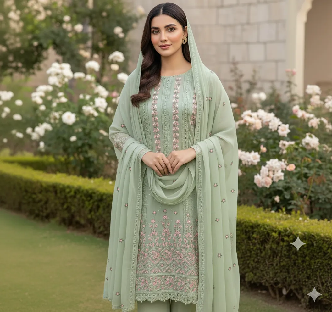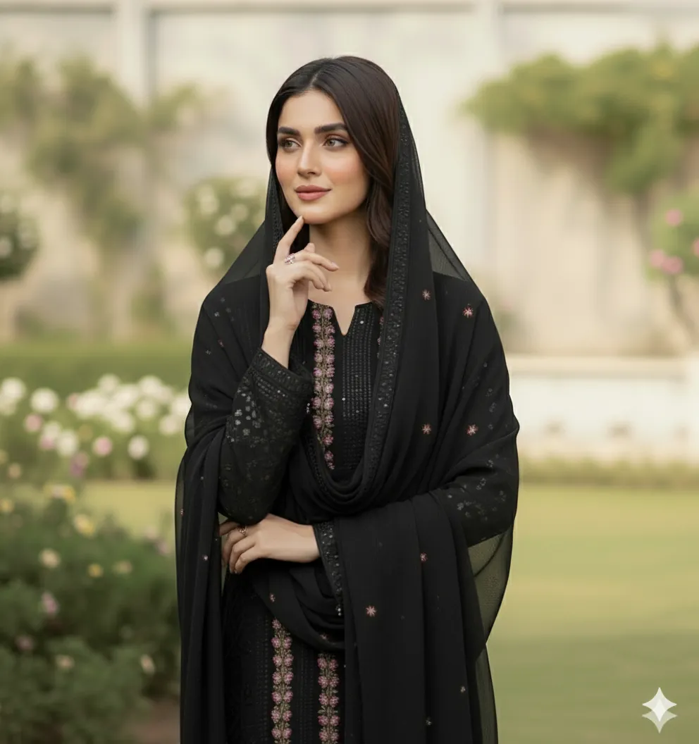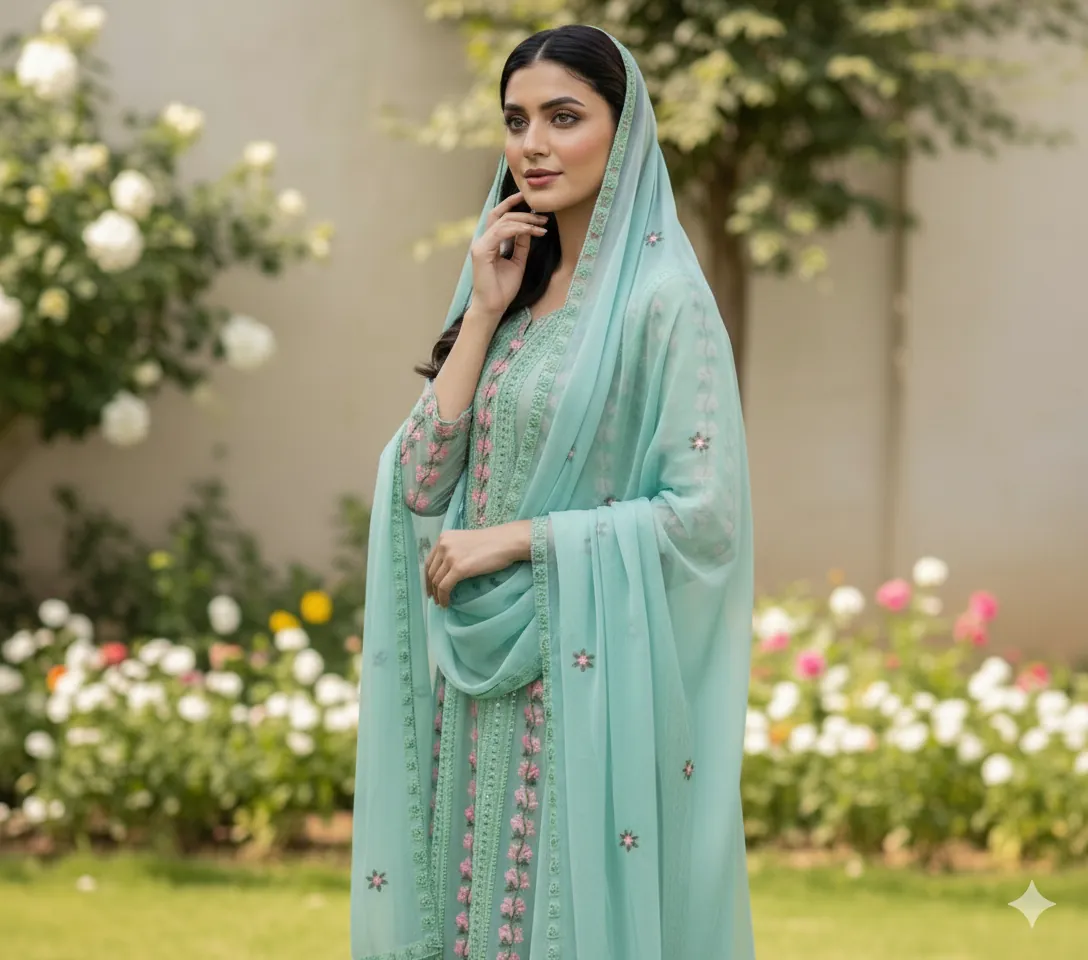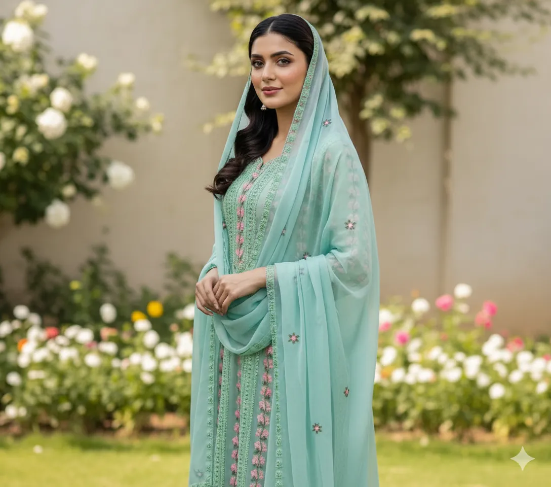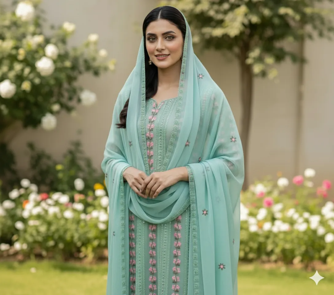 Bareeze Fancy Winter 2025 | Red Embroidered 2-Piece Bamber Chiffon Suit.Introducing a new arrival from the Bareeze Fancy Winter 2025 Collection. This 2-piece suit is made from high-quality Bamber Chiffon and features a heavily embroidered front and a fancy embroidered dupatta. Make a striking statement with this elegant and fancy suit from the Bareeze Winter 2025 Collection. Crafted from guaranteed high-quality Bamber Chiffon fabric, this two-piece set offers both style and comfort. The shirt is adorned with heavy embroidery on the front, complemented by delicate embroidery on the back and sleeves. The ensemble is completed with a beautifully embroidered and fancy dupatta. This unstitched suit provides 2.5 meters of shirt fabric and 2.5 meters of dupatta fabric, allowing you to get the perfect fit.