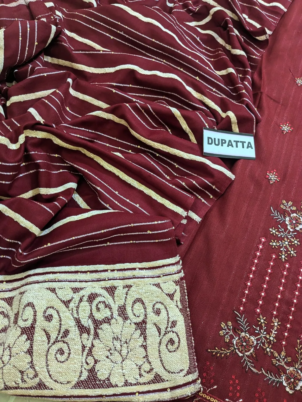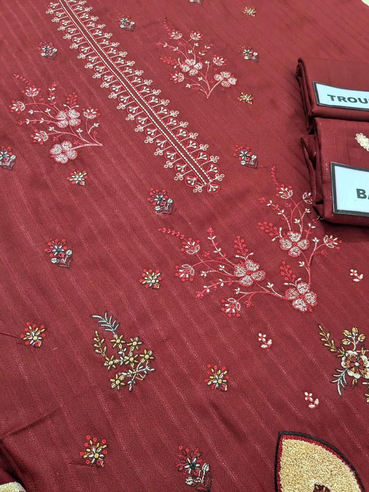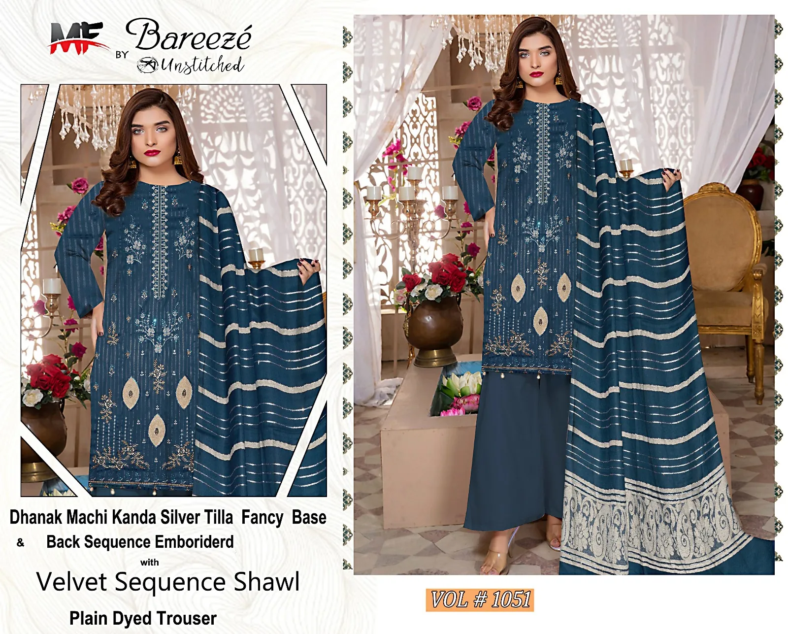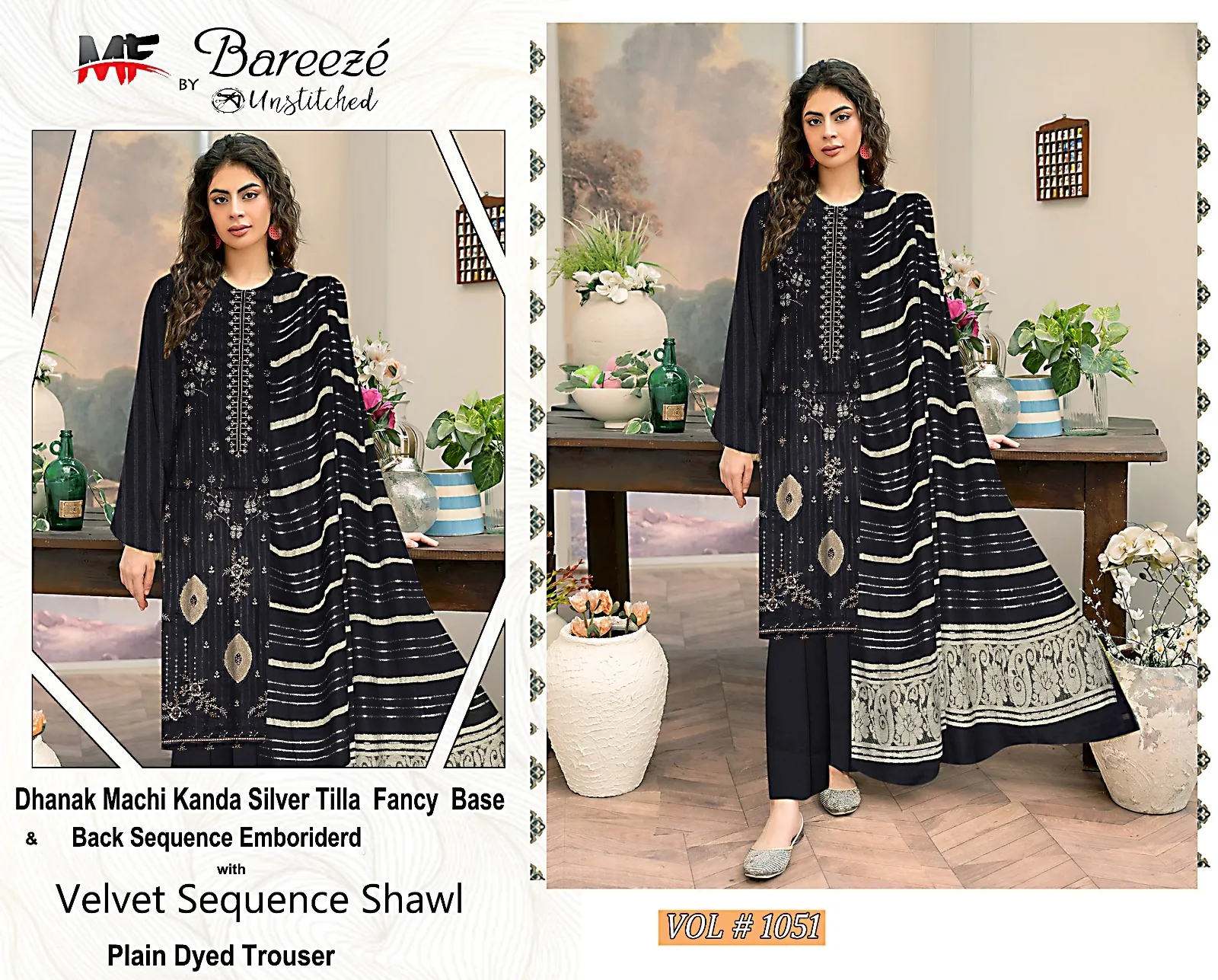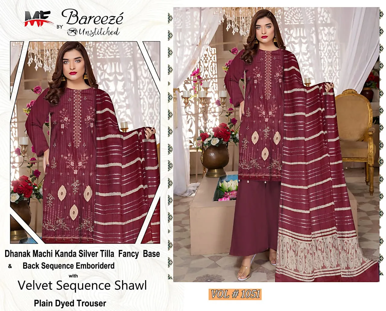 Bareeze New Arrivals: Winter Collection - Premium Zari Dhanak 3-Piece Velvet Embroidered Suits with Handmade Shawls