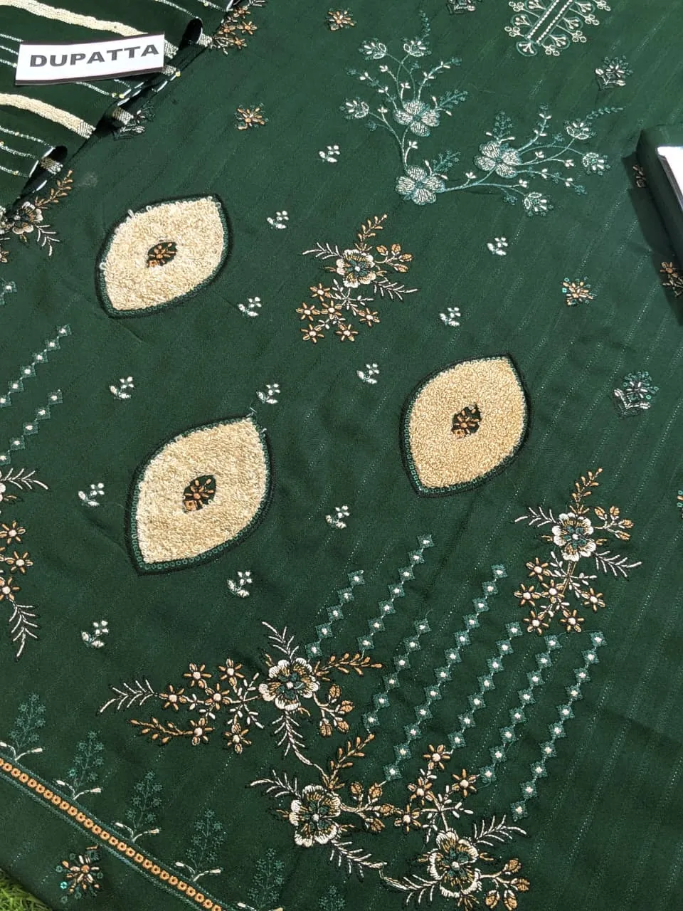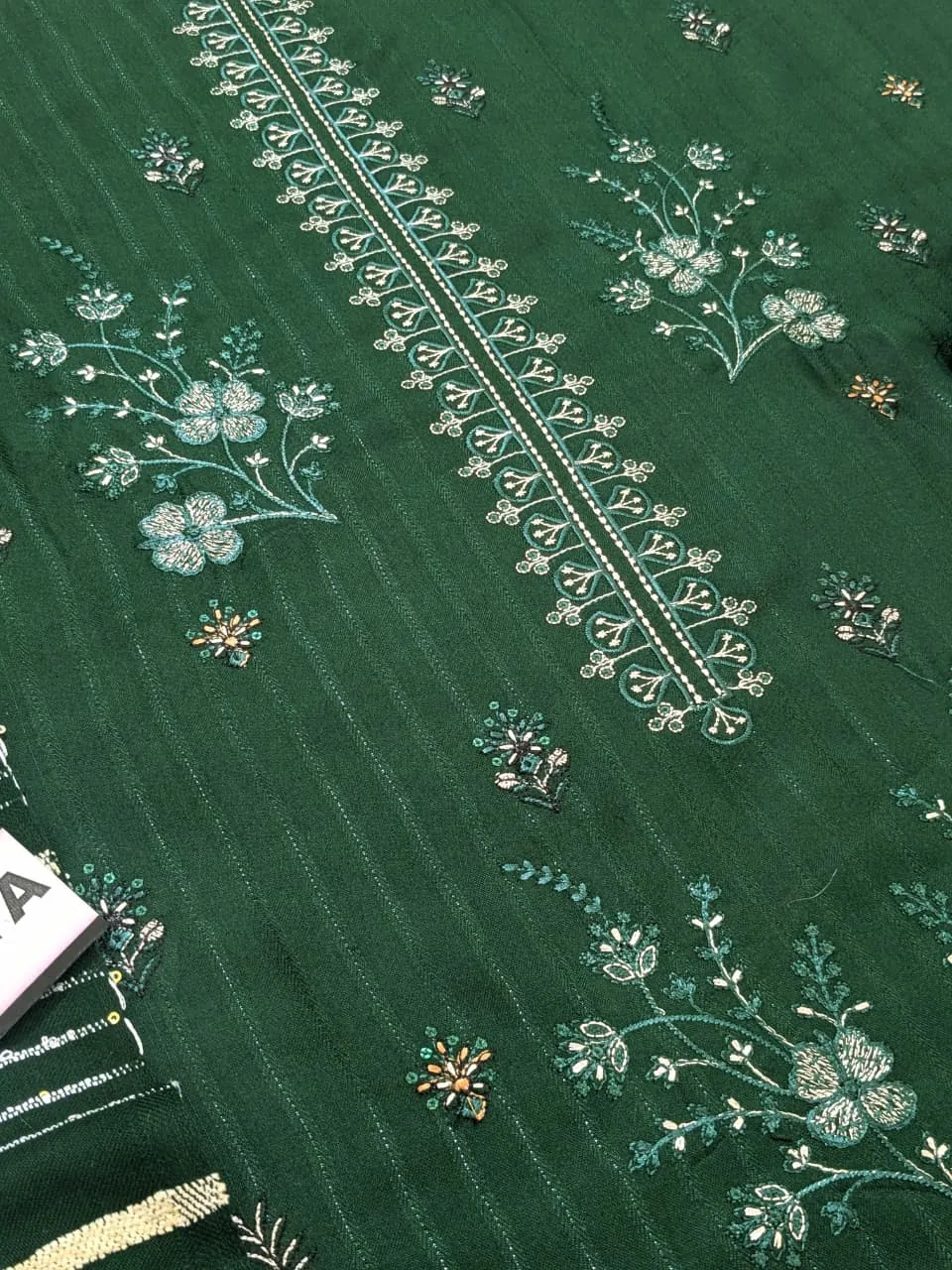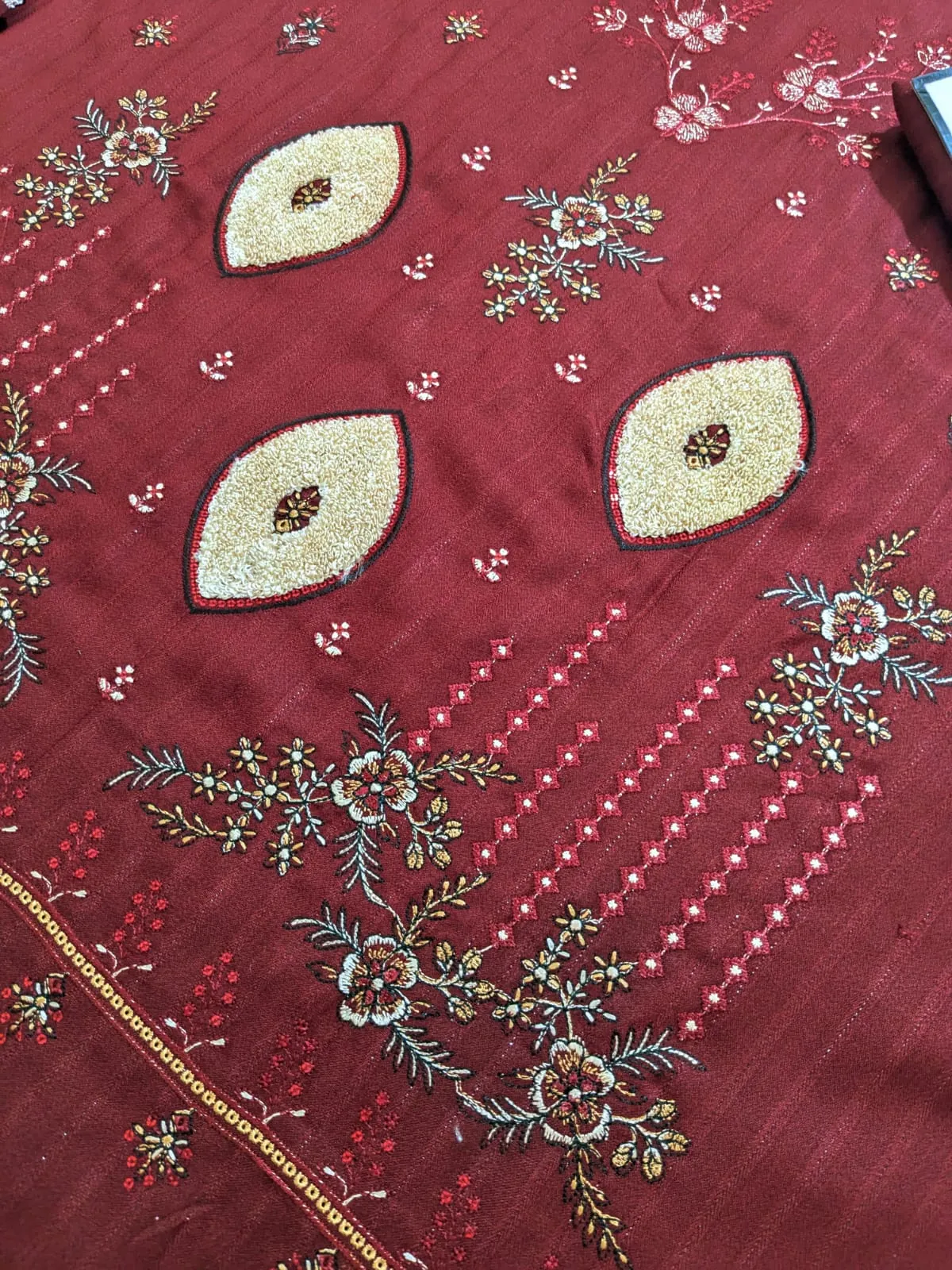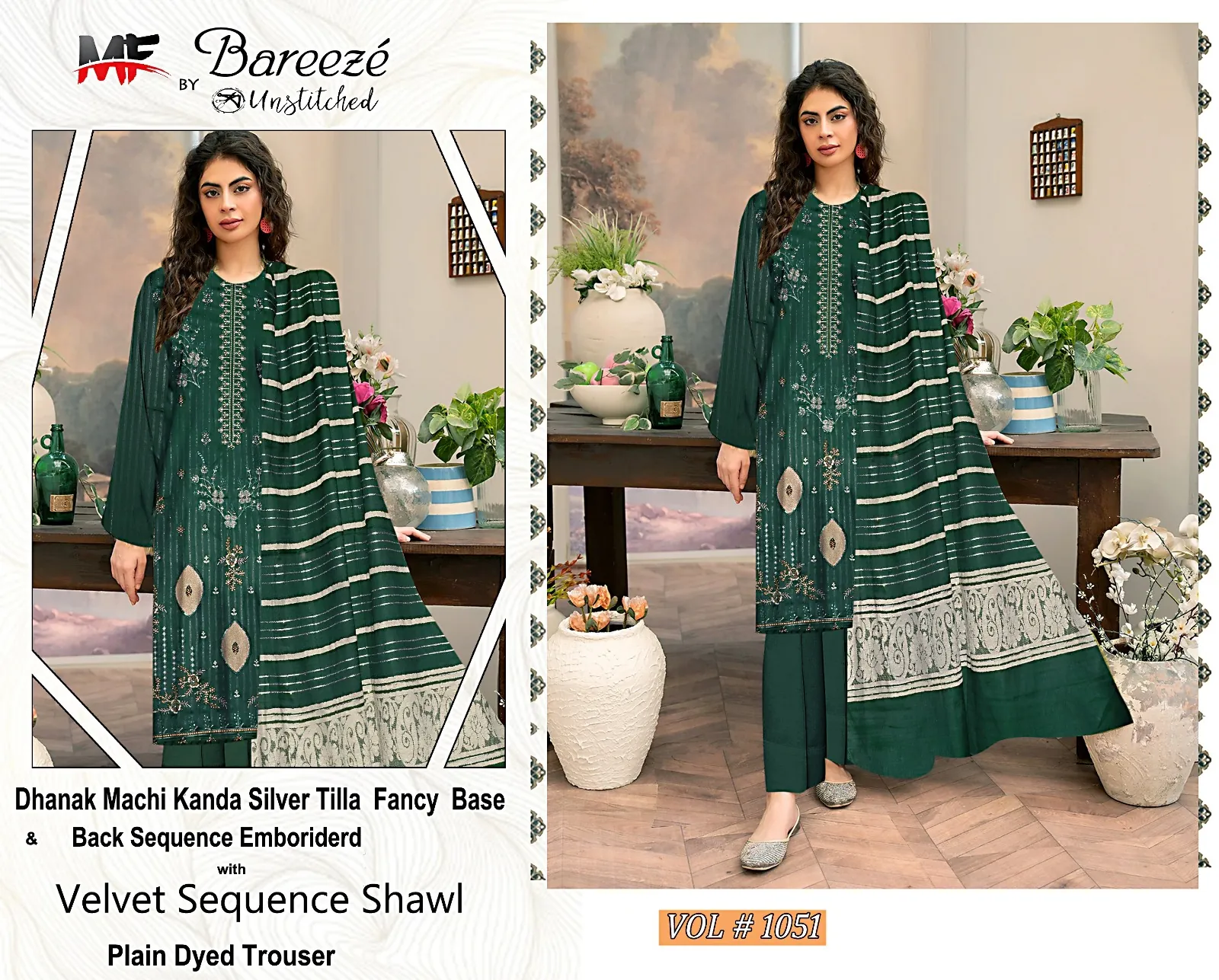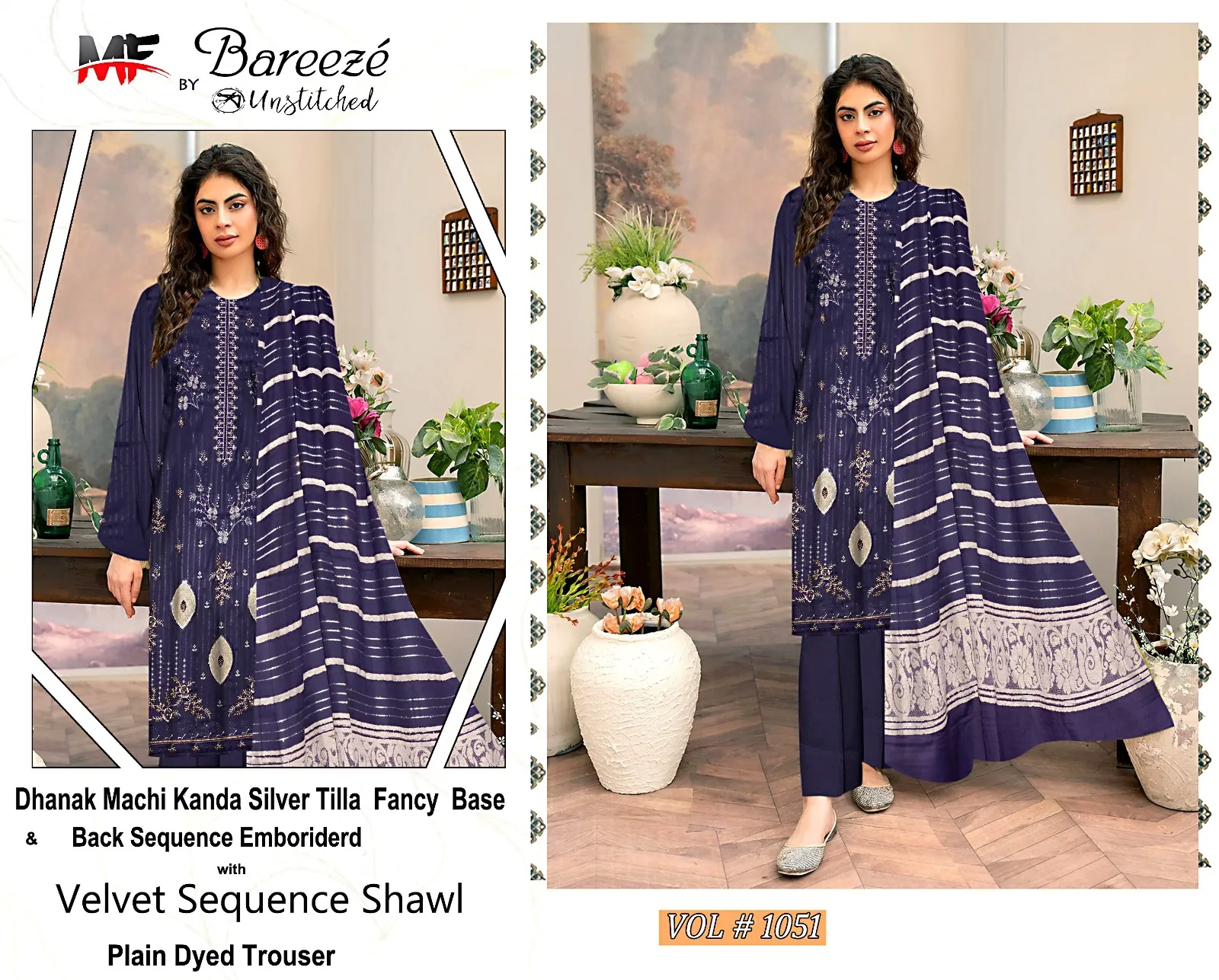 Bareeze New Arrivals: Winter Collection - Premium Zari Dhanak 3-Piece Velvet Embroidered Suits with Handmade Shawls