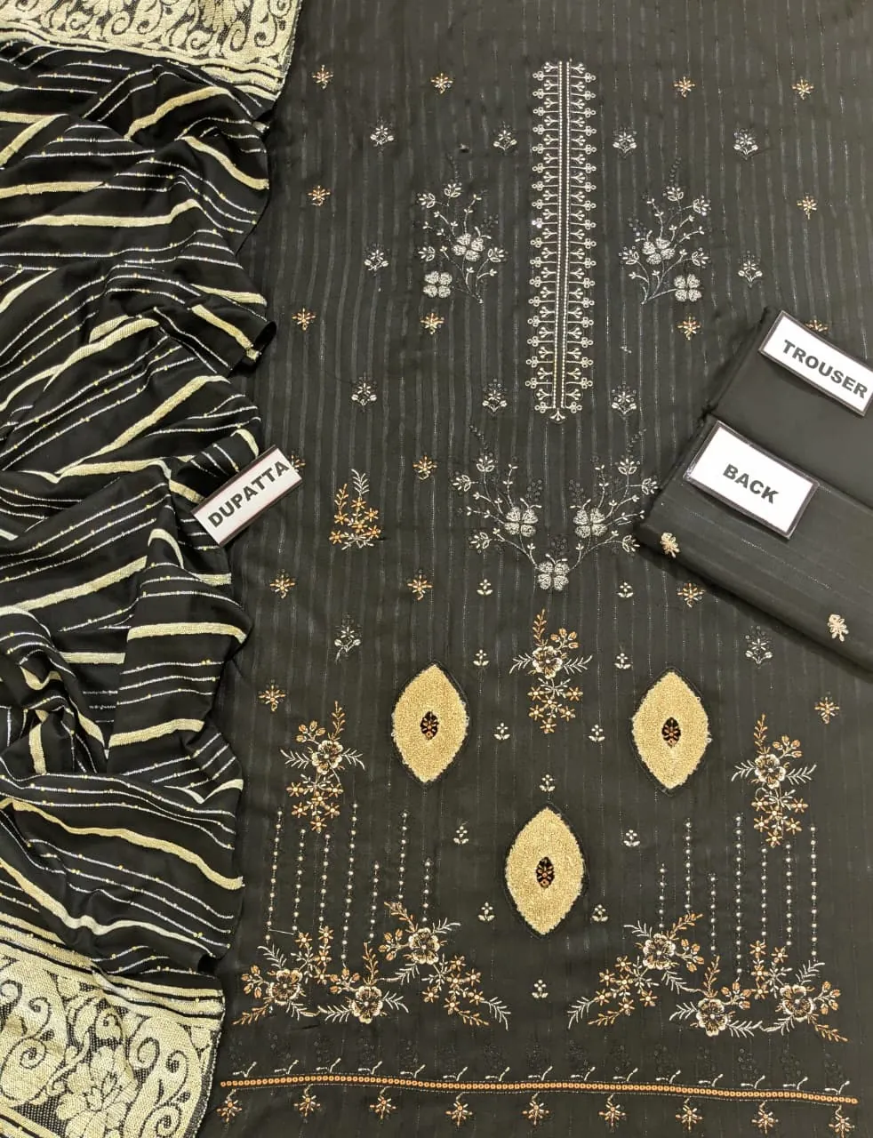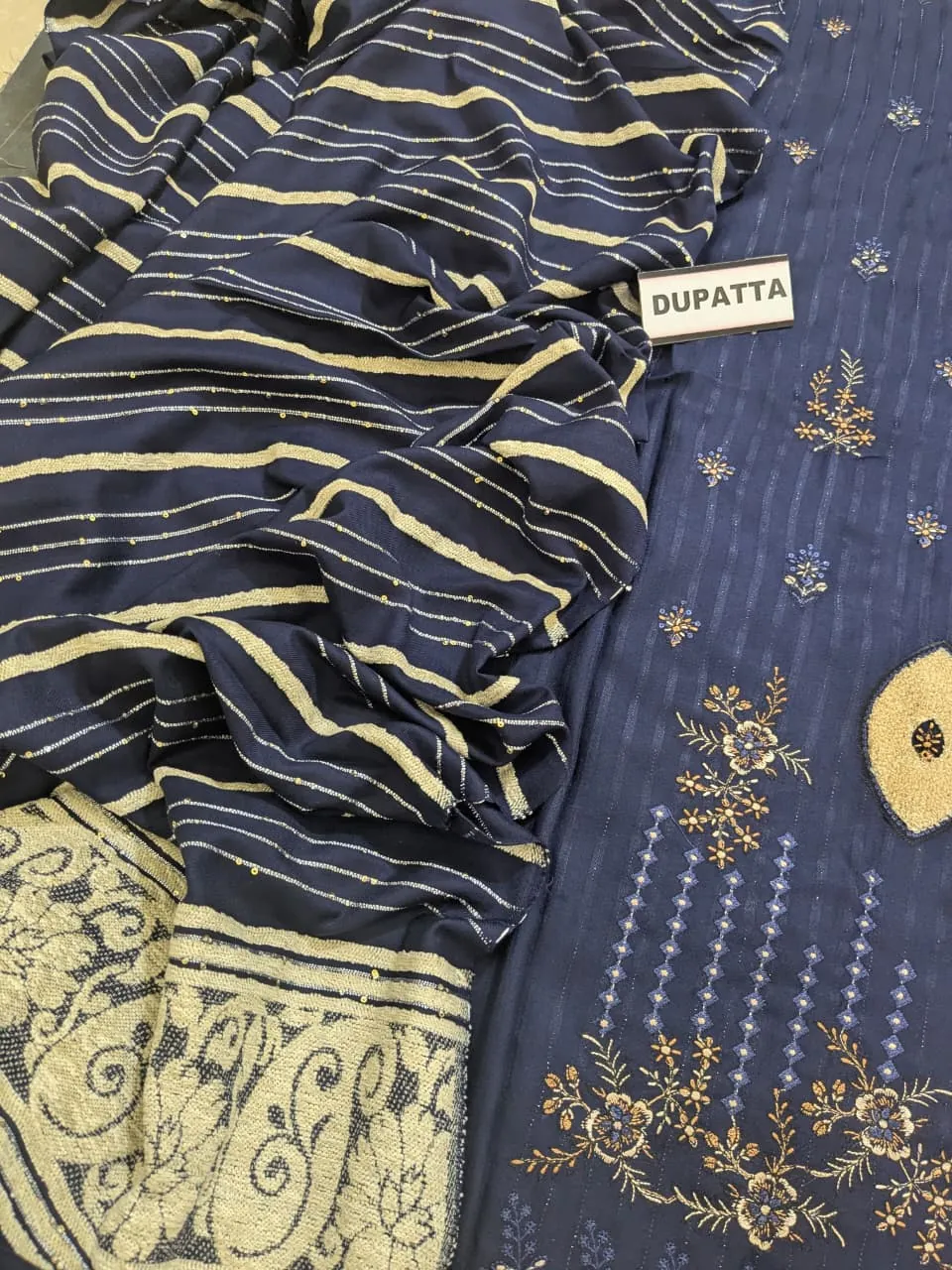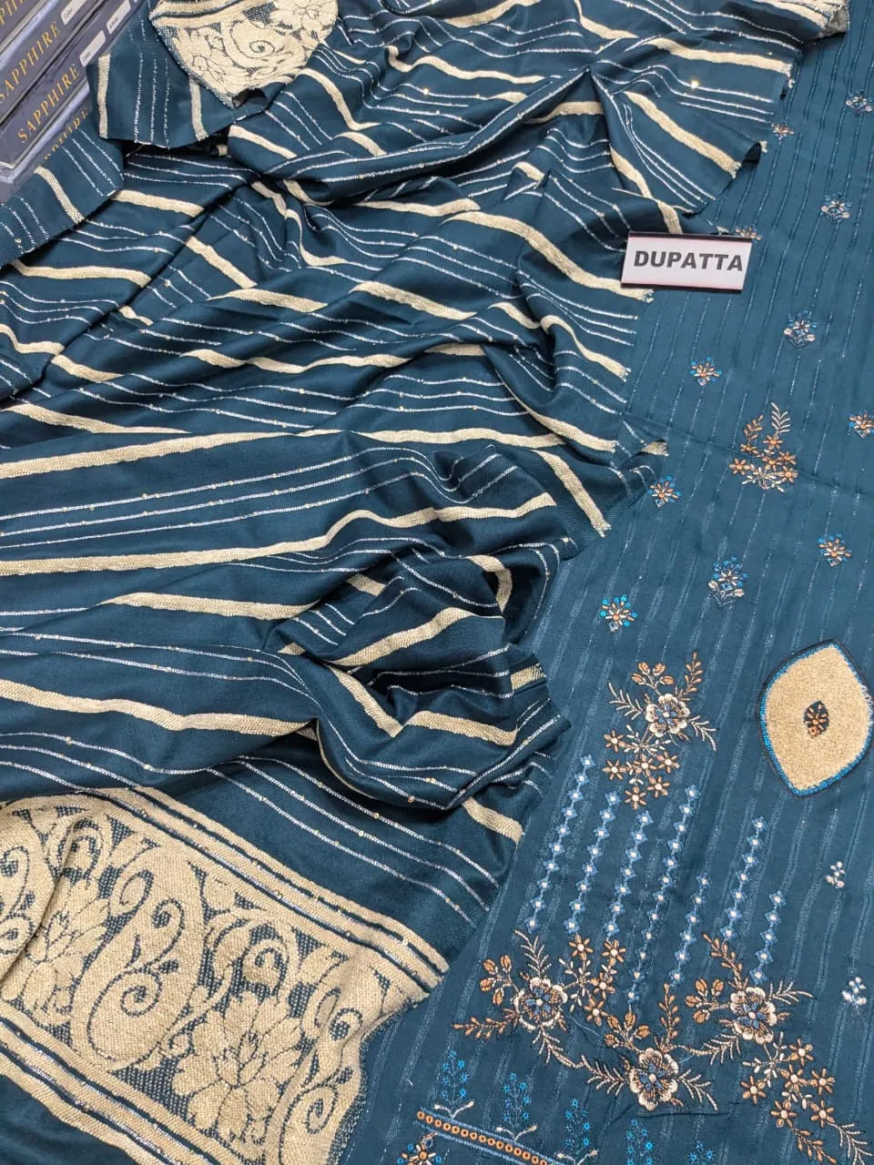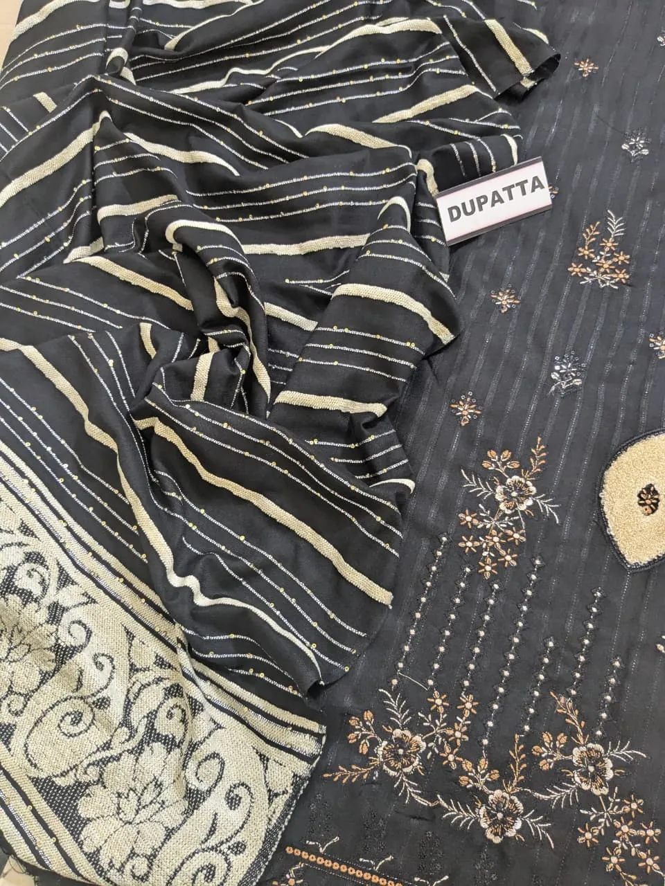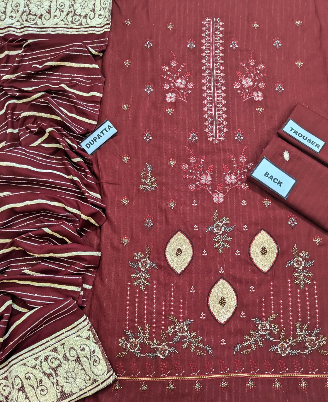 Bareeze New Arrivals: Winter Collection - Premium Zari Dhanak 3-Piece Velvet Embroidered Suits with Handmade Shawls