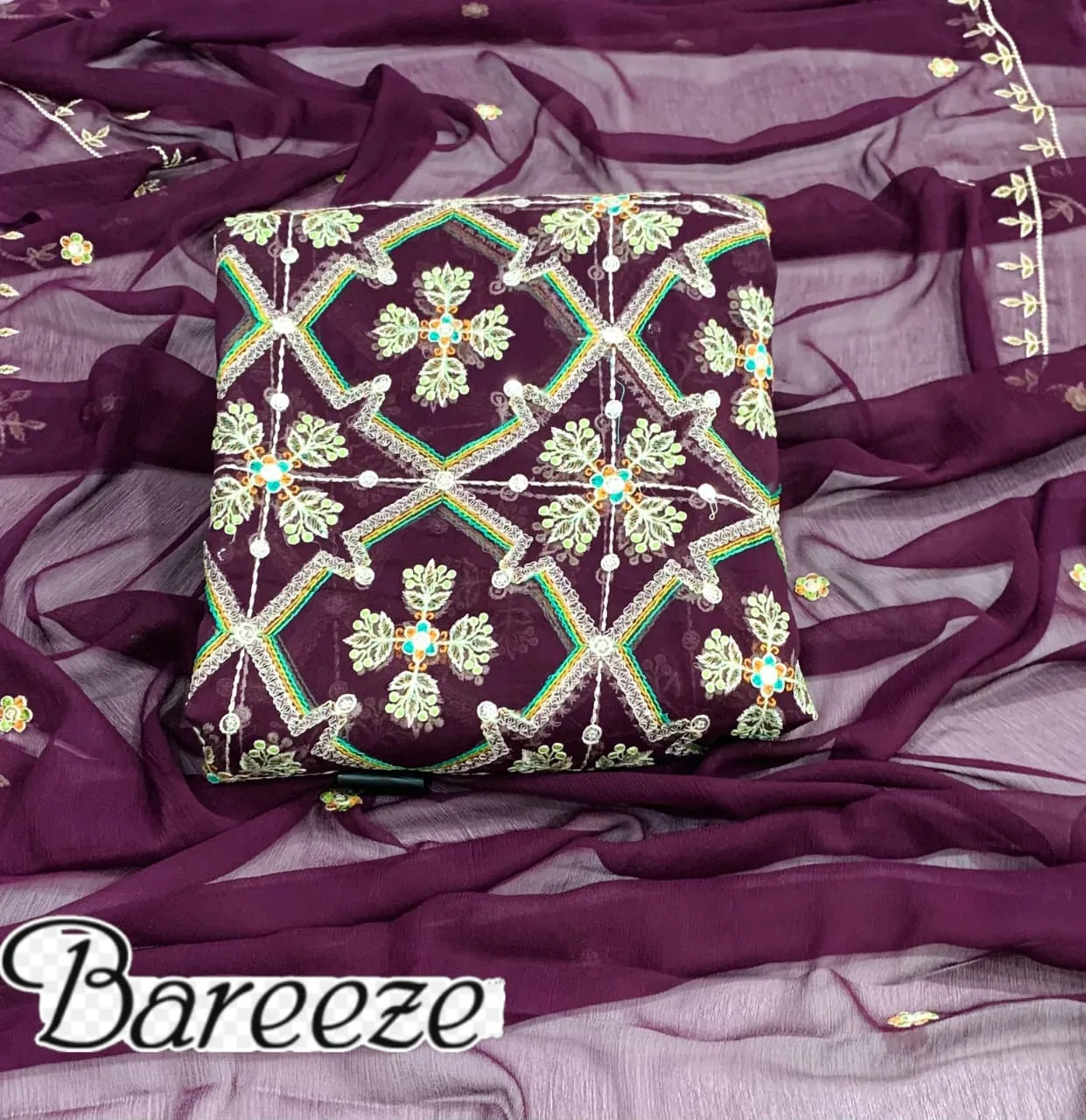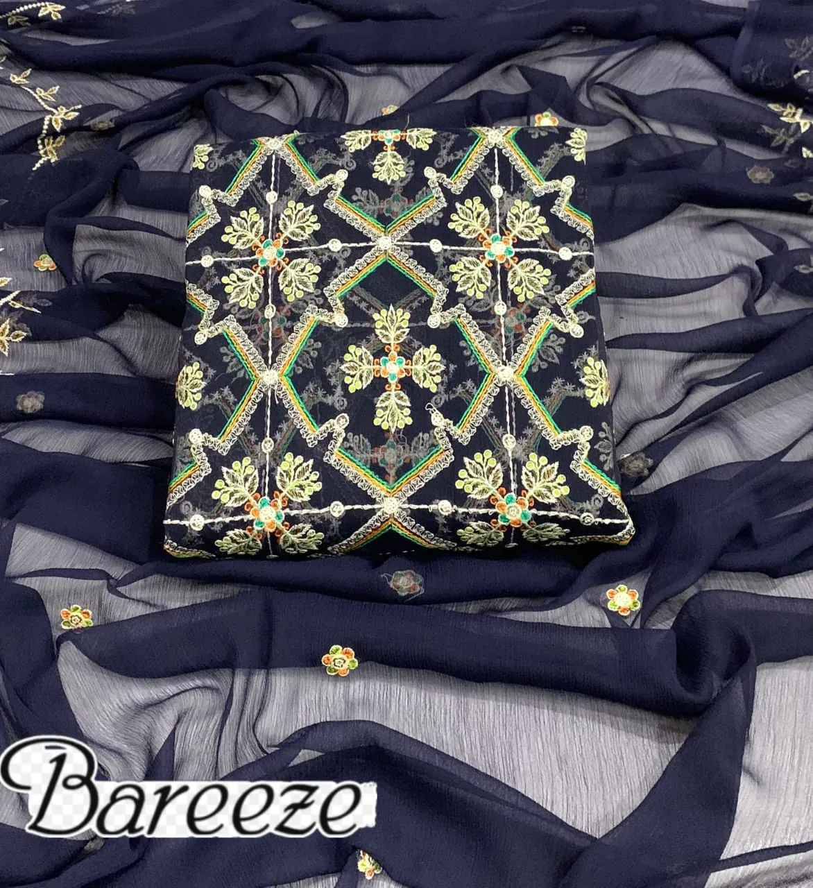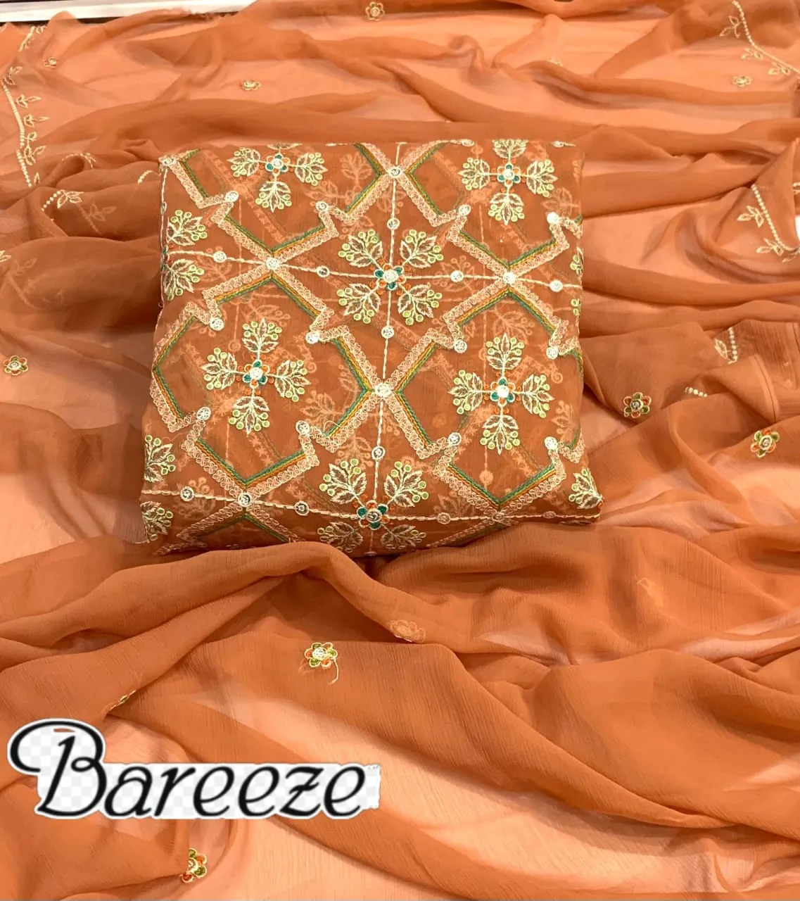 the season with the Bareeze Winter 2025 New Arrivals, featuring this gorgeous fancy 2-piece collection. Designed for the modern woman who values both style and quality, this suit is made from premium bamber chiffon that feels as luxurious as it looks. The unstitched fabric gives you the freedom to create a custom fit, while the intricate detailing makes a statement.