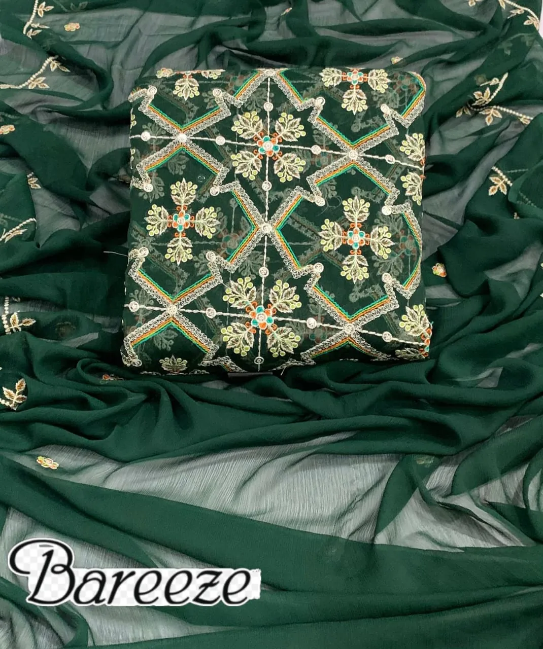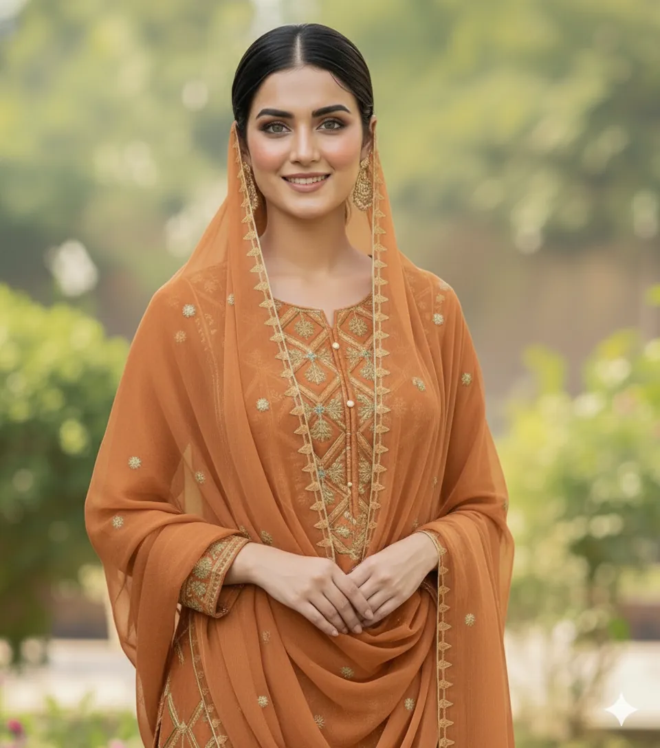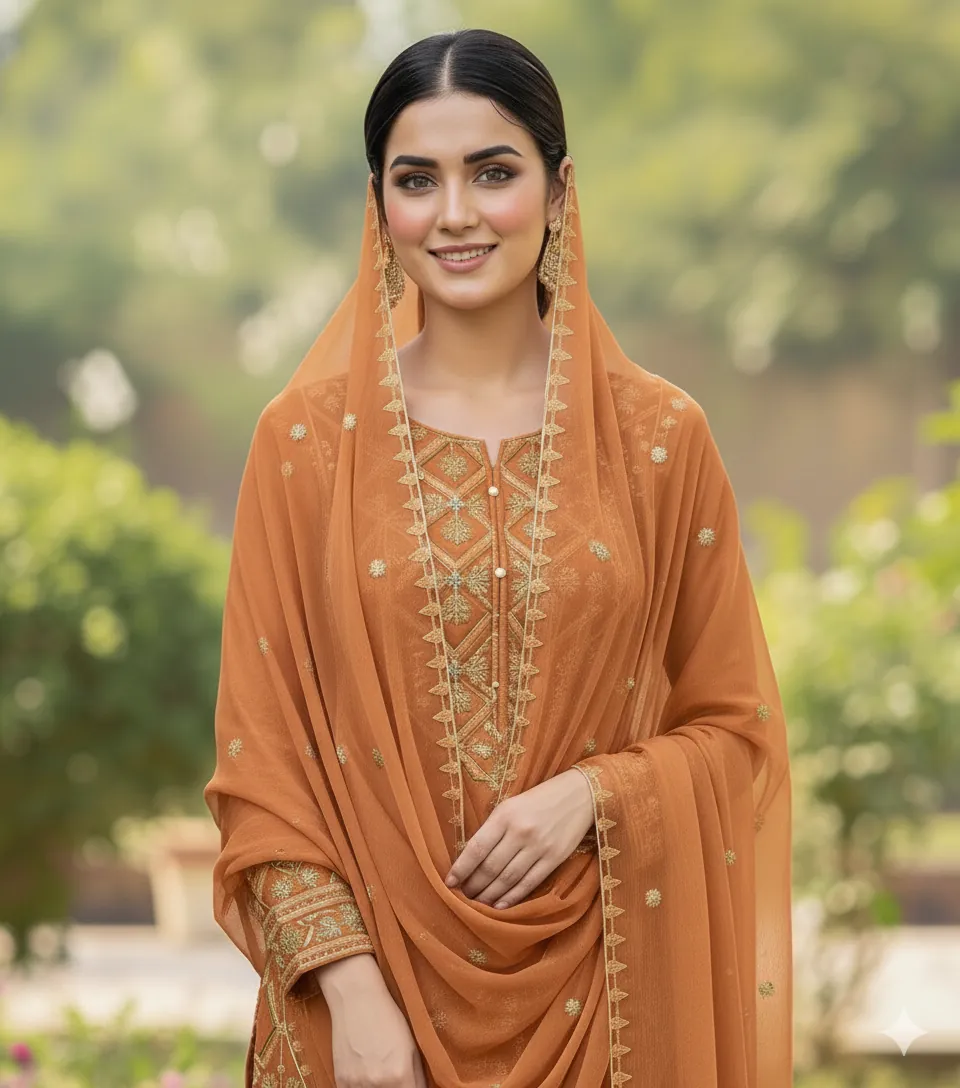 the season with the Bareeze Winter 2025 New Arrivals, featuring this gorgeous fancy 2-piece collection. Designed for the modern woman who values both style and quality, this suit is made from premium bamber chiffon that feels as luxurious as it looks. The unstitched fabric gives you the freedom to create a custom fit, while the intricate detailing makes a statement.