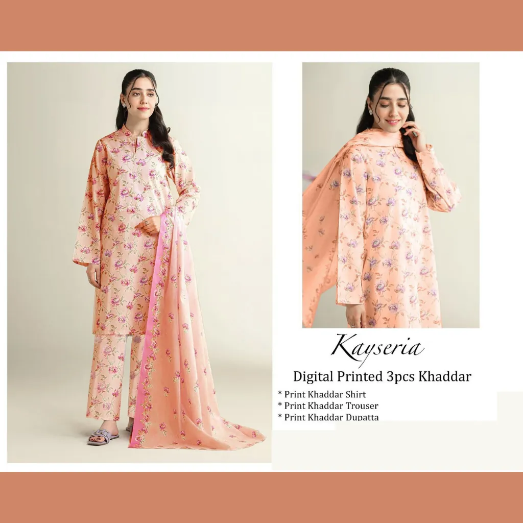 The BAROQUE Khaddar Printed Unstitched 3 Piece is crafted for women who love fashion and comfort. It features a printed khaddar shirt, trouser, and dupatta. Premium fabric provides warmth during cold months. Elegant prints highlight BAROQUE’s unique craftsmanship. Suitable for daily wear, events, or office outfits. Its unstitched design lets you create your own style. The fabric is soft, breathable, and durable. Versatile prints make it easy to accessorize. Long-lasting quality ensures value for money. A wardrobe essential for winter elegance.