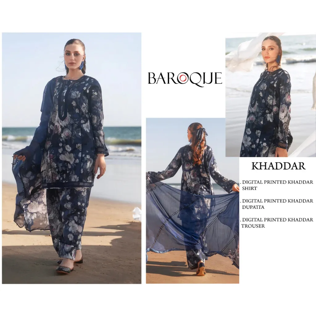 Upgrade your winter wardrobe with the Baroque Khaddar Printed Unstitched 3 Piece Collection 2025 — where luxury meets comfort.