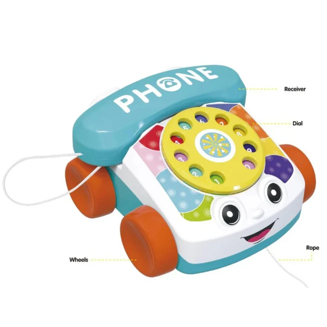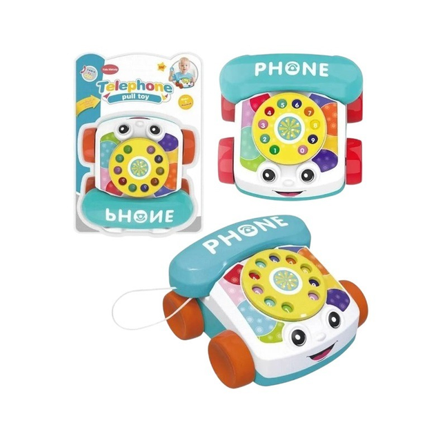 Introduce your little one to hours of interactive fun and early learning with the Bebe Fisher Price Pull Phone Toy! This charming baby telephone is designed to engage and entertain with its delightful sound and light features. Shaped like a classic telephone with a rotary dial, it encourages imaginative role-playing as your child pretends to make calls. The pull-along feature promotes gross motor skills and coordination as they move around. With bright colors, engaging sounds, and captivating lights, this toy stimulates sensory development and provides a playful way to learn about numbers and communication. Made with child-safe materials, it's the perfect companion for your toddler's developmental journey.