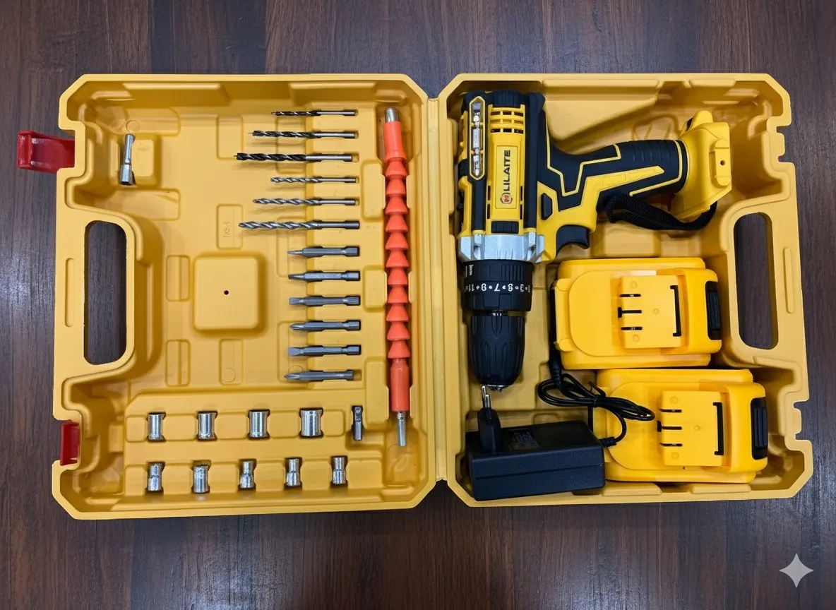 - All-in-One Accessory Set: Includes a large assortment of drill bits, driver bits, and sockets.