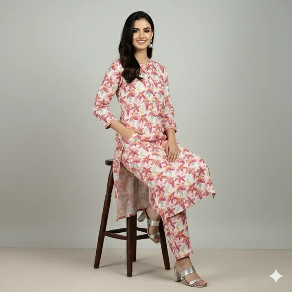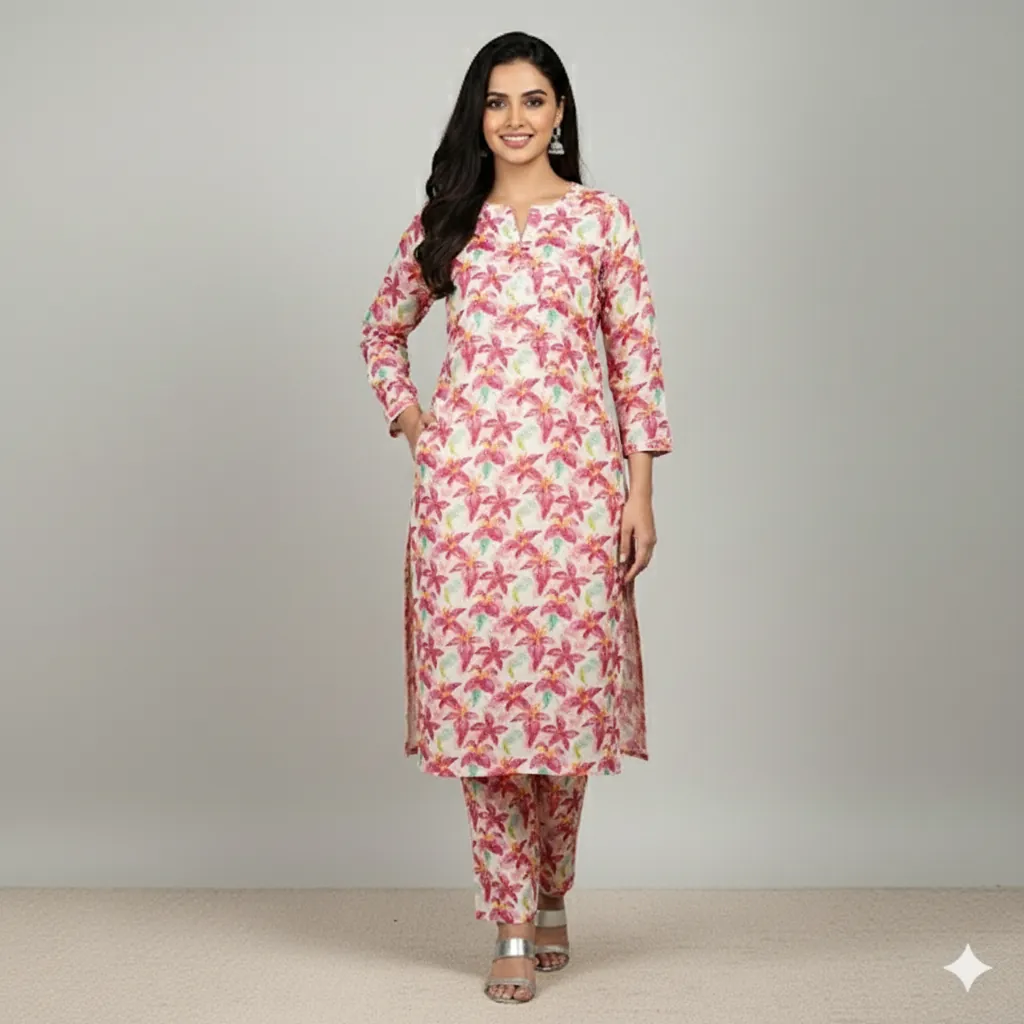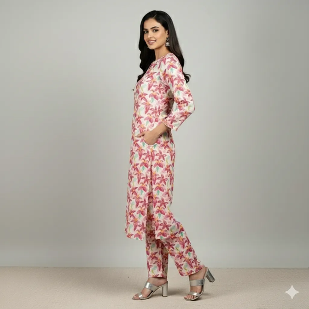 BIN SAEED Original 2-Piece Printed Lawn Suit - Vibrant Pink Floral Print on Light Base. Shop the original BIN SAEED 2-piece printed lawn collection. This suit features a stunning large floral print in vibrant pink and green on a soft, off-white base. The set includes a printed lawn shirt and a matching printed lawn trouser. Experience the elegance and comfort of the BIN SAEED 2-Piece Printed Lawn Collection. This 100% original suit features a striking, large-scale floral pattern of lily-like flowers in a vibrant pink/magenta color, accented with light green leaves, all set against a soft, light-colored background. The set includes a beautifully designed printed lawn shirt and a matching printed lawn trouser. The fabric is a generous 5-meter cutting, providing ample material for a perfect fit. Ideal for daily wear, office, or casual outings, this summer collection offers both style and breathability.