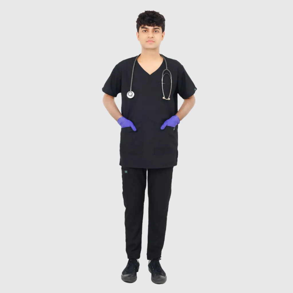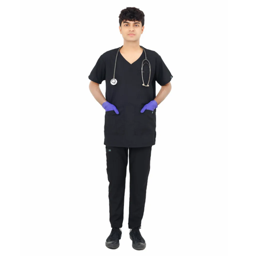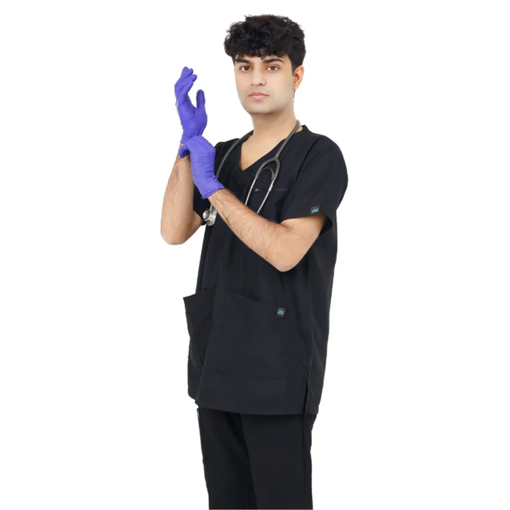 The black color adds a sharp and professional touch to your appearance and is less prone to visible stains — ideal for high-paced, demanding environments. Whether you're working in a hospital, clinic, or academic setup, this scrub suit delivers on both practicality and polished style.