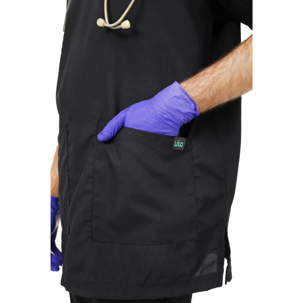 Introducing the perfect combination of style, functionality, and professionalism — our Black Men’s Half Sleeves Scrub Suit with a secure zipper chest pocket, designed specifically for male doctors, nurses, paramedics, and healthcare students.