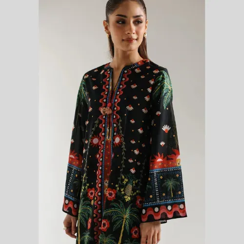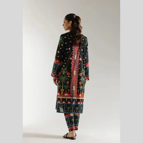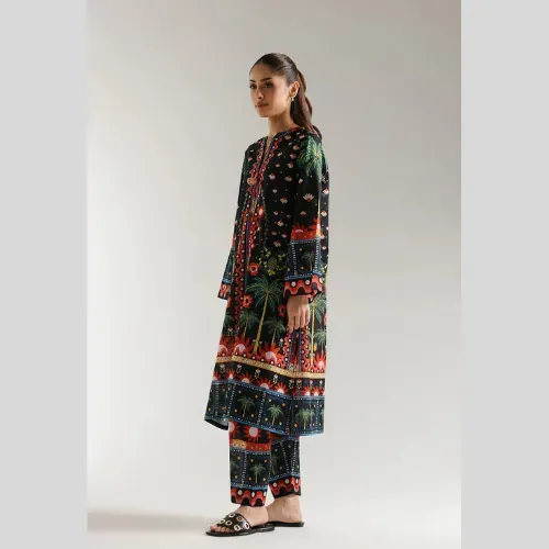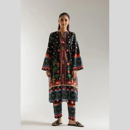 Step into the new season with our exquisite Black Multi-Color Floral Printed 2-Piece Suit, a must-have from our latest summer collection. This beautifully stitched outfit offers a perfect blend of elegance and vibrant style, designed for the modern woman.