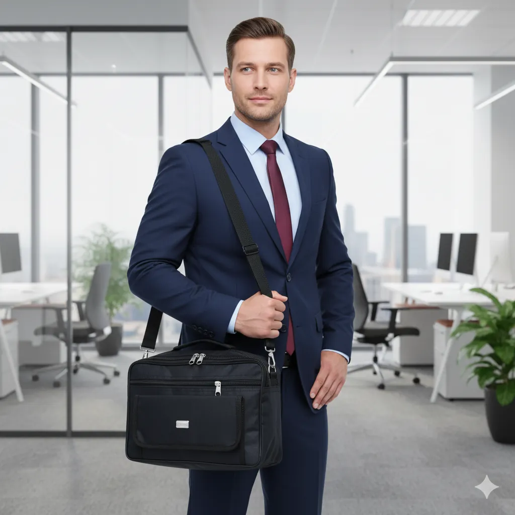 Stay organized and professional with this Black Office File Bag, designed to carry everything from documents and files to gadgets and stationery. Crafted from durable, water-resistant fabric with reinforced stitching, this multipurpose shoulder bag offers both style and structure for your daily office or business needs.