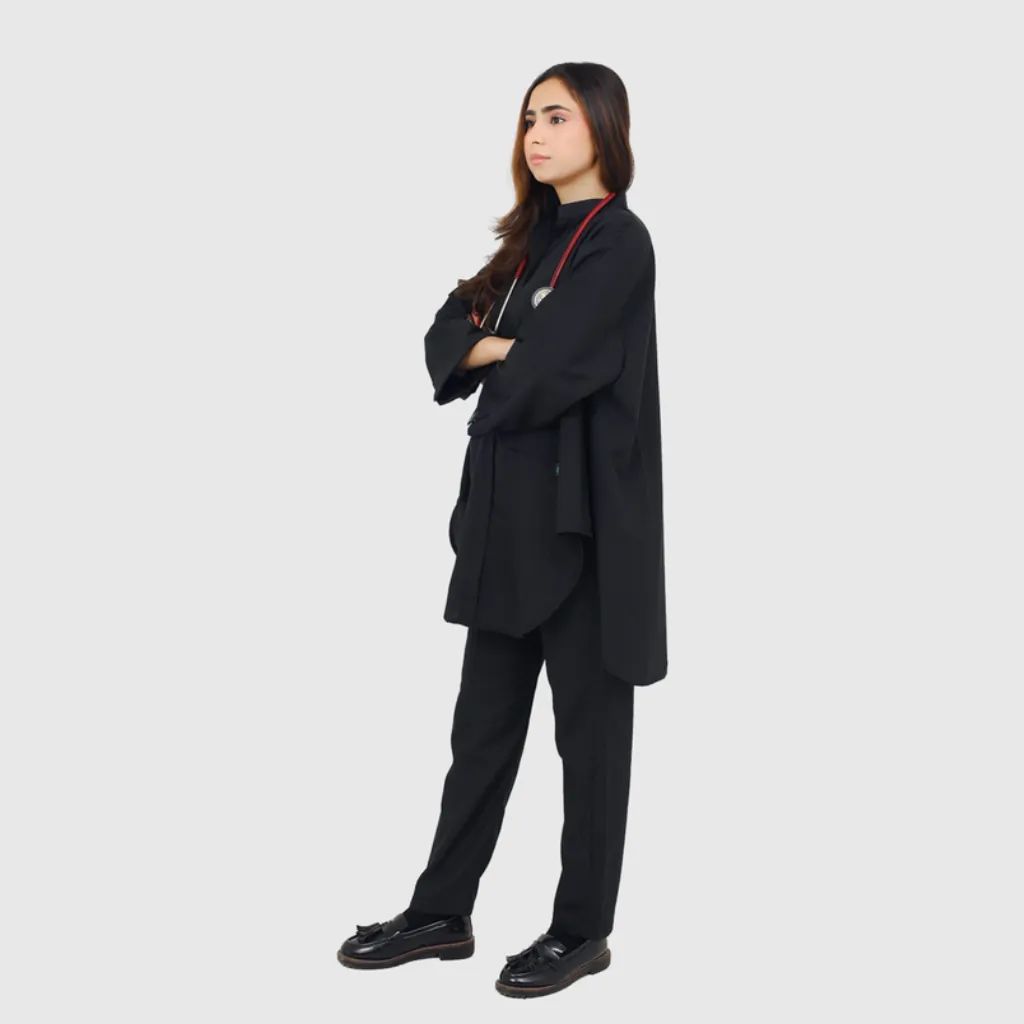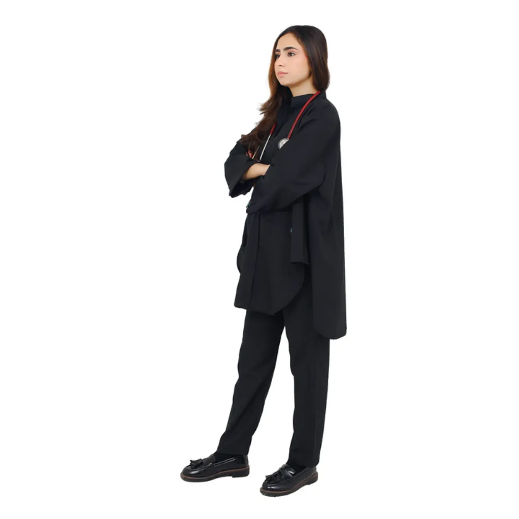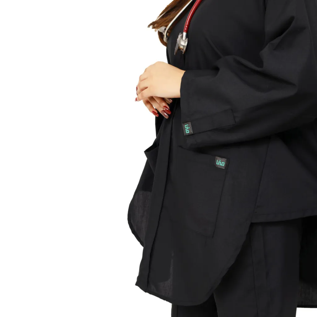 Elevate your professional appearance with our Black Frock Style Full Sleeves Scrub Suit for Women, thoughtfully designed for comfort, modesty, and modern aesthetics. Ideal for doctors, nurses, lab technicians, and other healthcare professionals, this scrub suit offers a graceful yet practical solution for daily clinical wear.