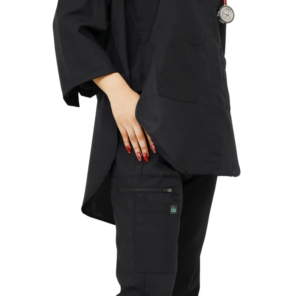 Choose this black scrub suit if you’re looking for a blend of professionalism, comfort, and timeless style in your workwear.