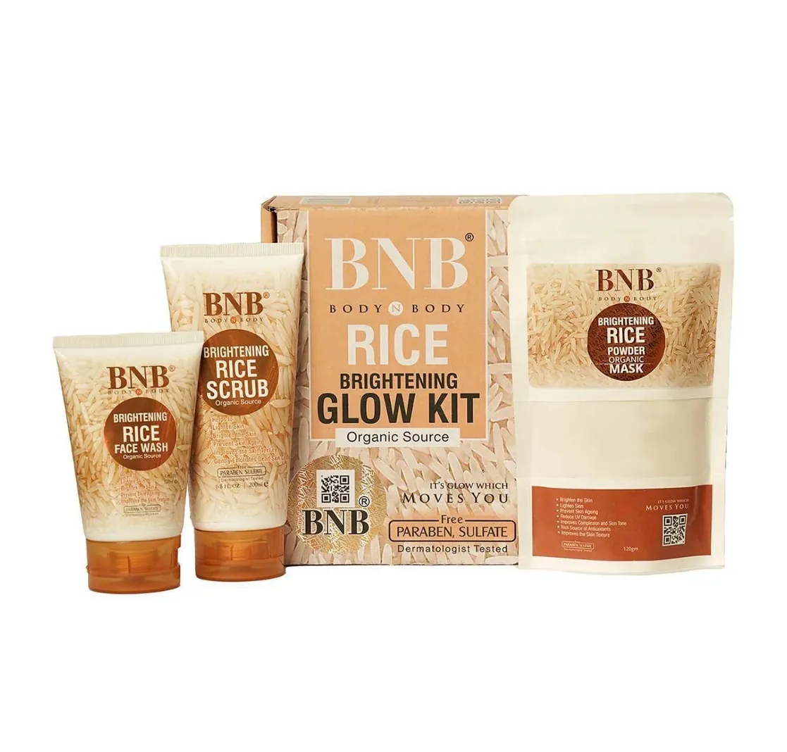 Reveal your natural luminosity with the BNB Rice Brightening Glow Kit. This organic-based set gently brightens skin and evens out tone using the power of rice extract. Key features include a cleansing face wash, an exfoliating scrub, and a nourishing powder mask. These work together to lighten dark spots, improve skin texture, and promote a healthy glow. Experience a gentle yet effective skincare routine for a more radiant complexion.