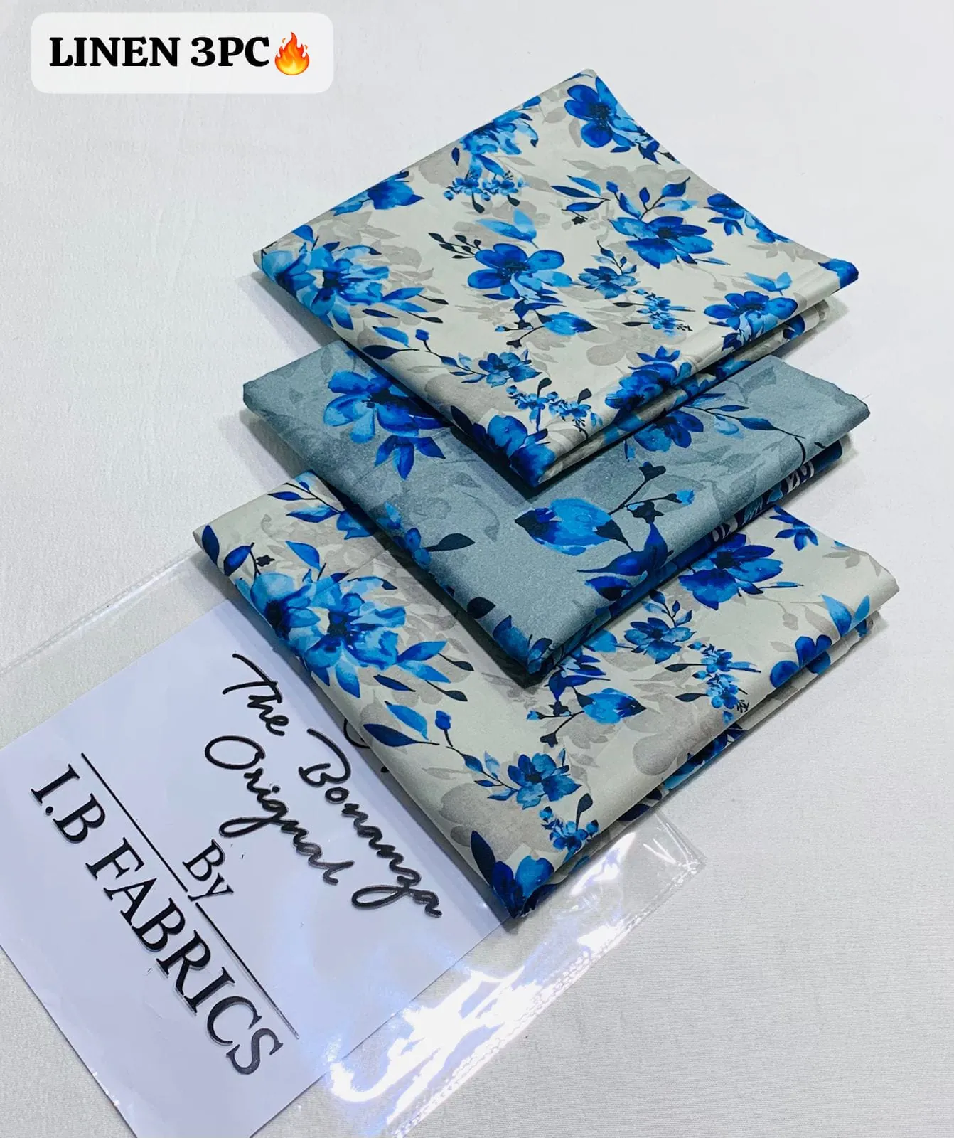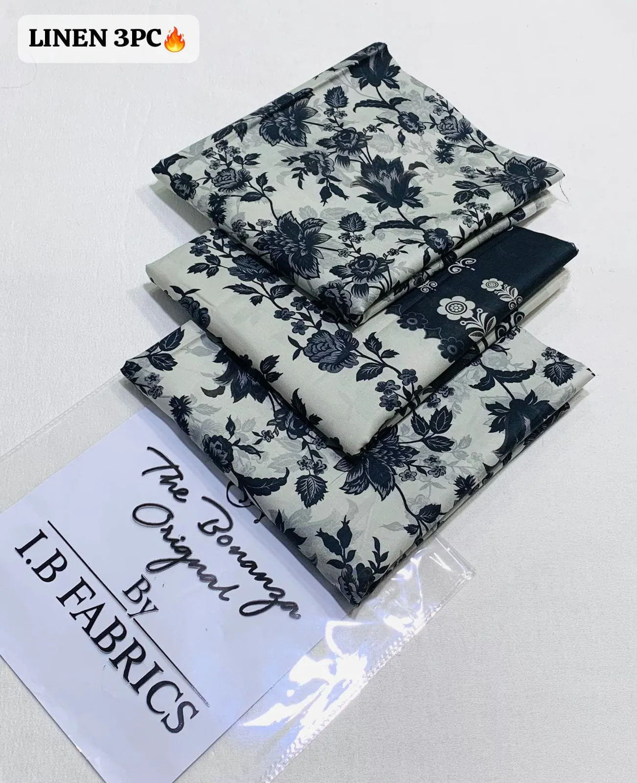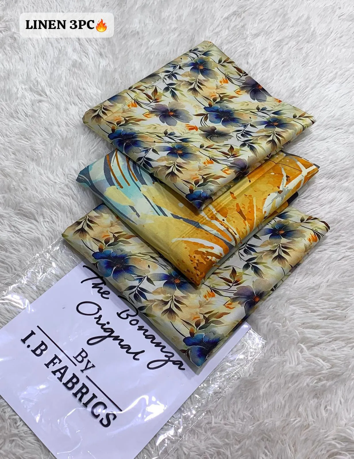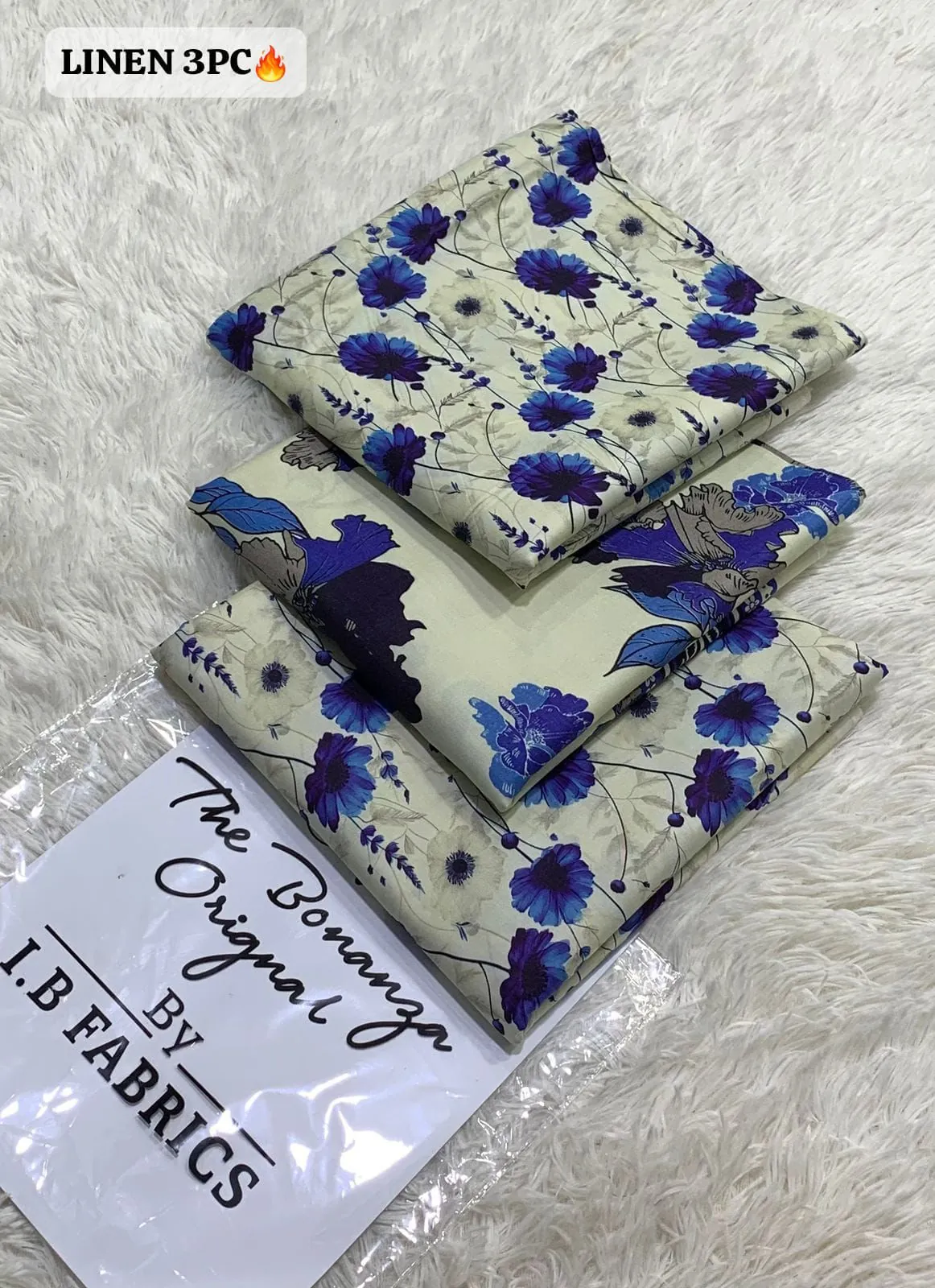 BONANZA IB Latest Linen Collection 2025: All-Over 3-Piece Digital Printed Suit with Matching Dupatta and Trouser