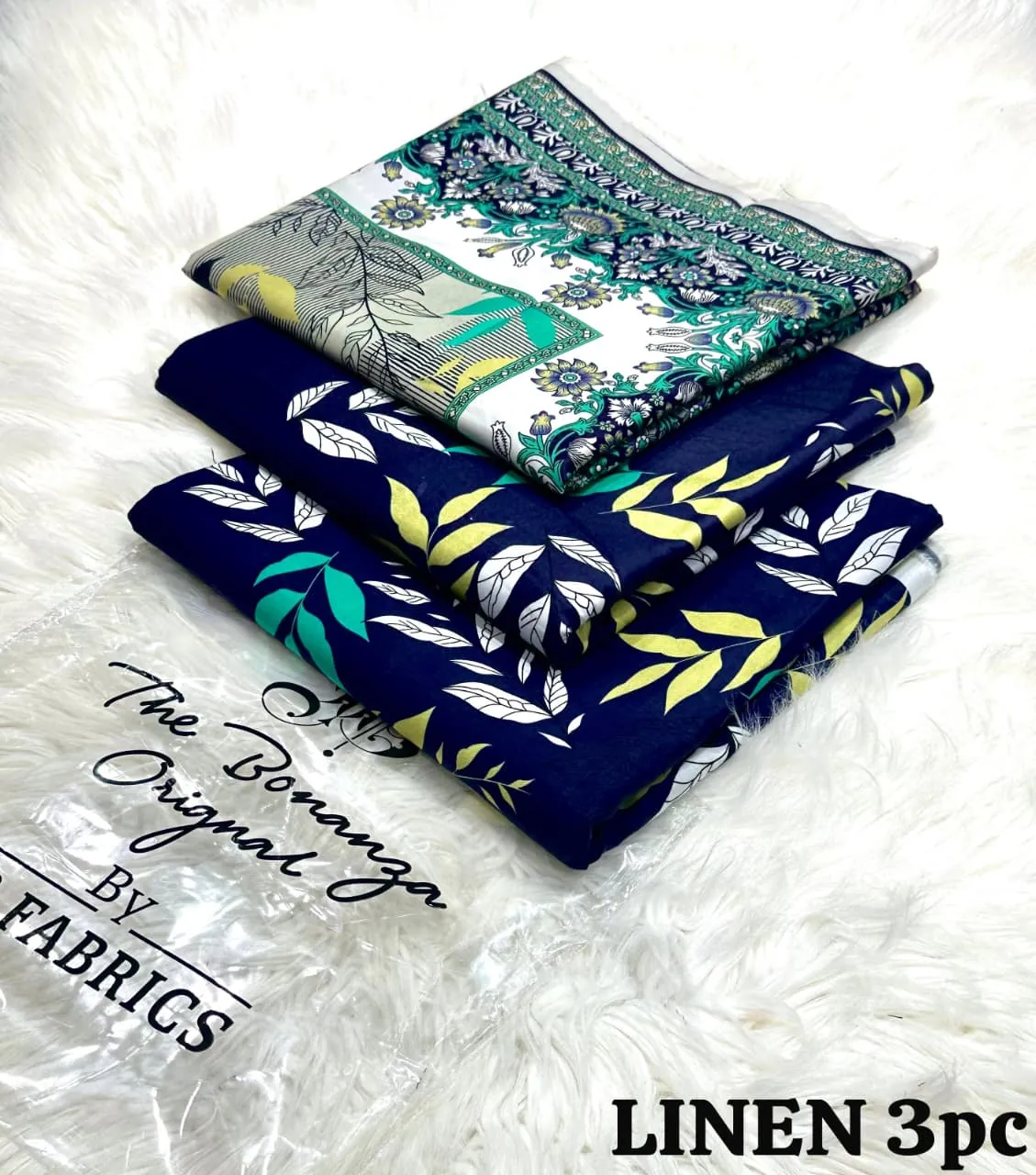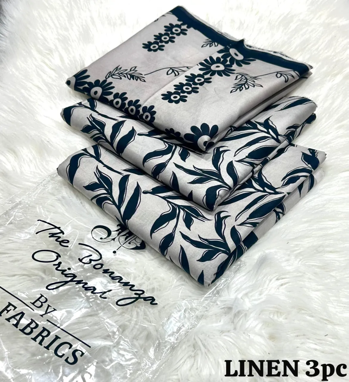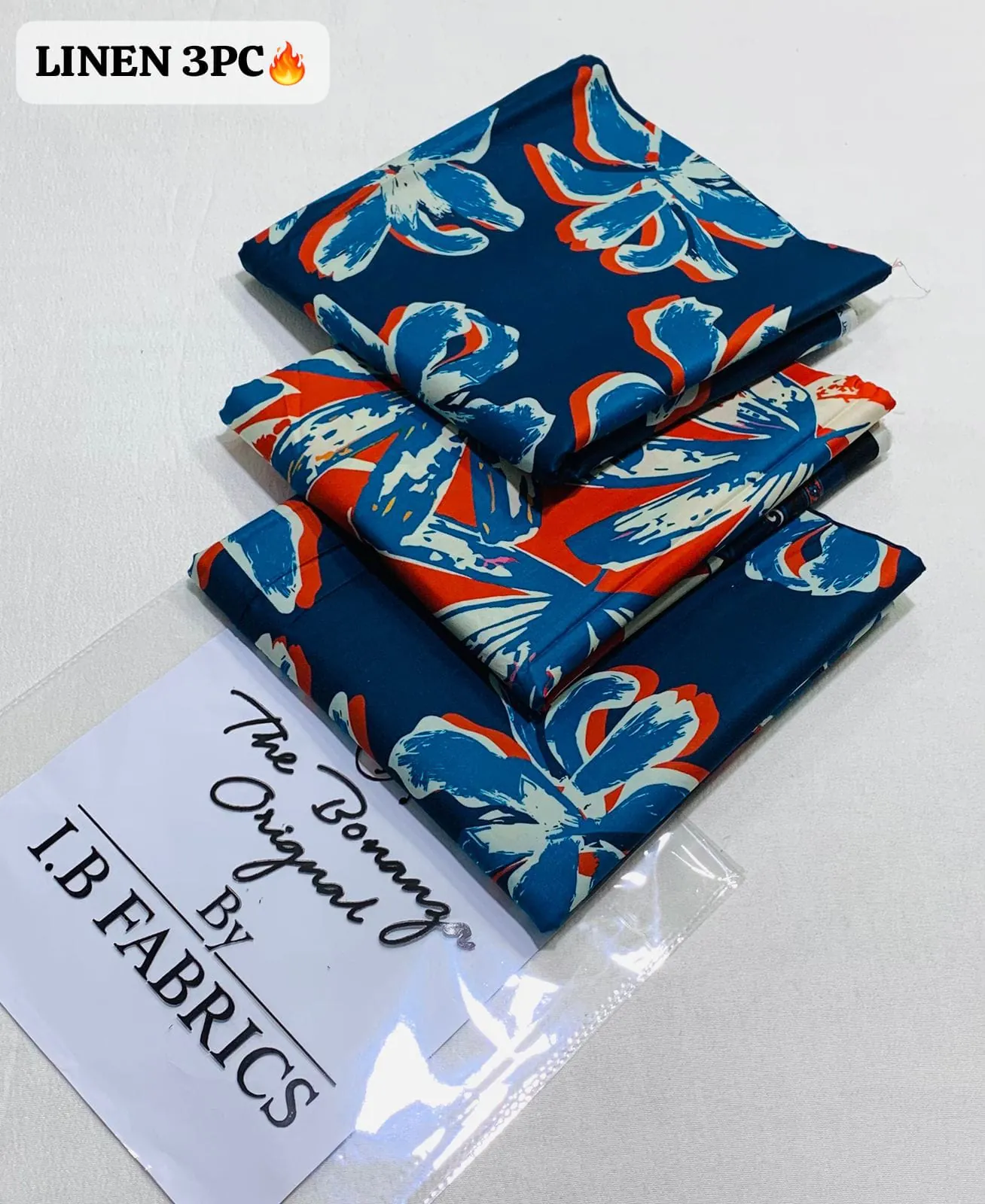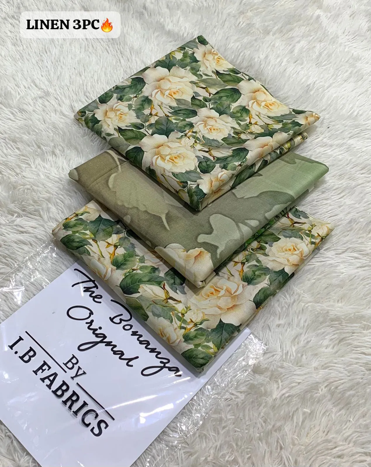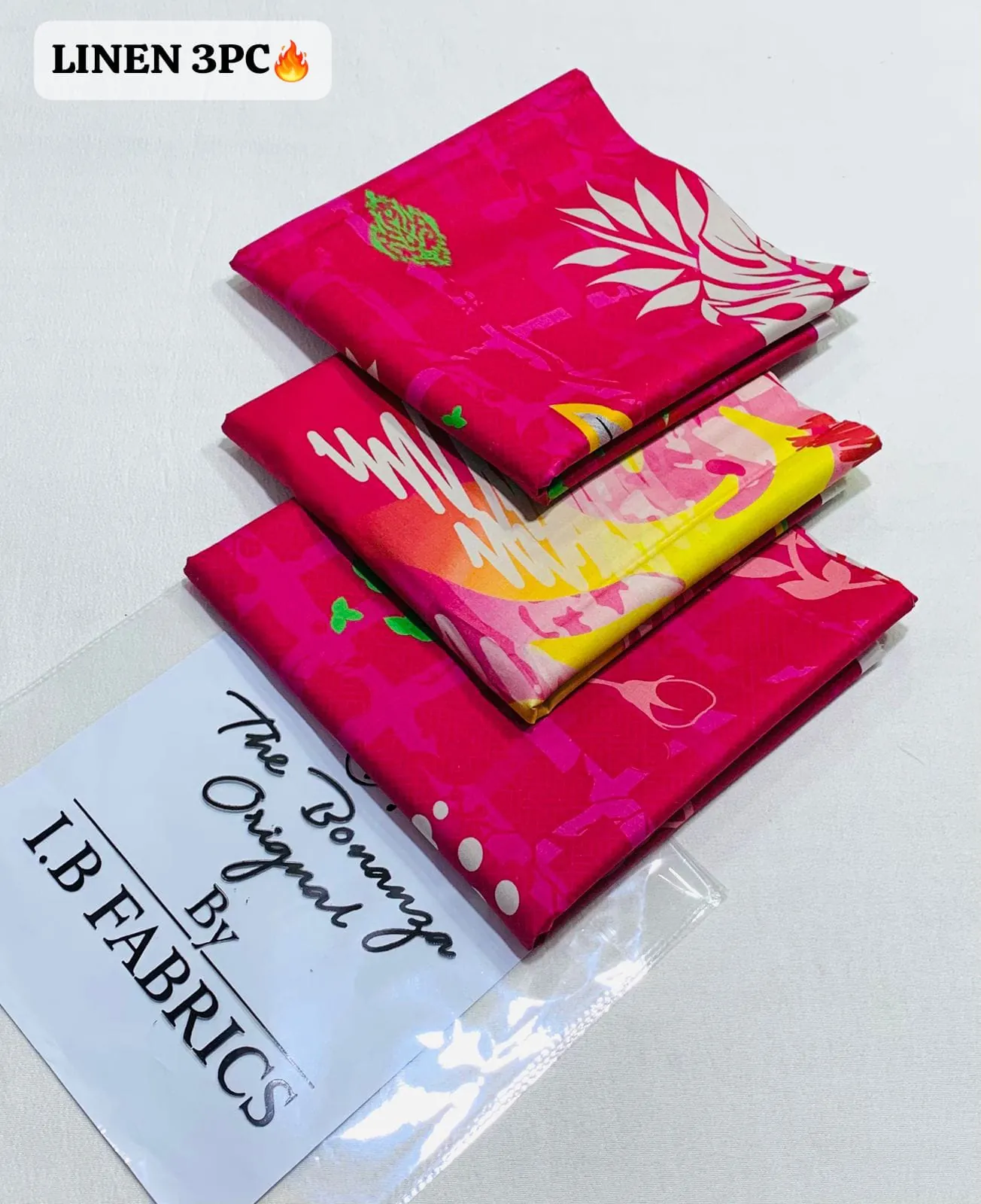BONANZA IB Latest Linen Collection 2025: All-Over 3-Piece Digital Printed Suit with Matching Dupatta and Trouser