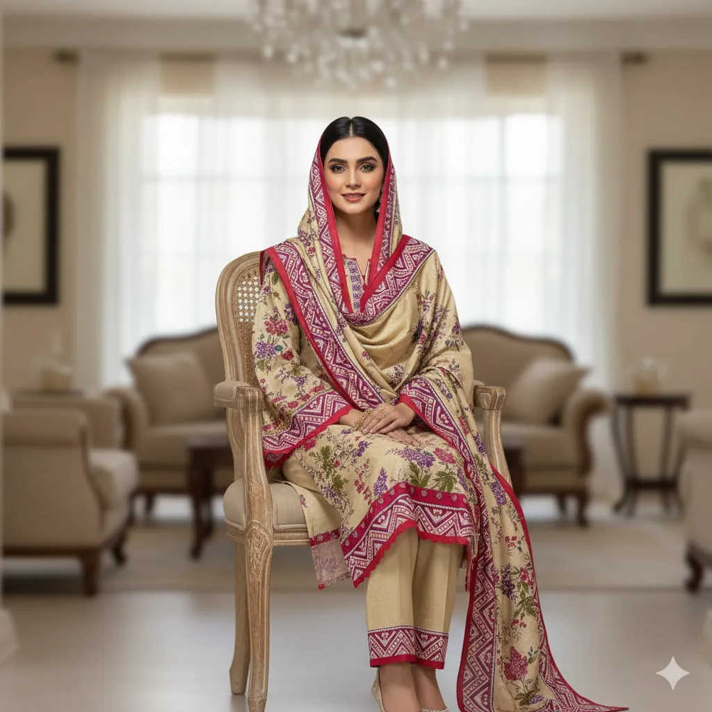 Perfect for casual and semi-formal occasions, this 3-piece set includes a printed linen shirt, printed linen dupatta, and printed linen trouser, ensuring a complete and coordinated look.