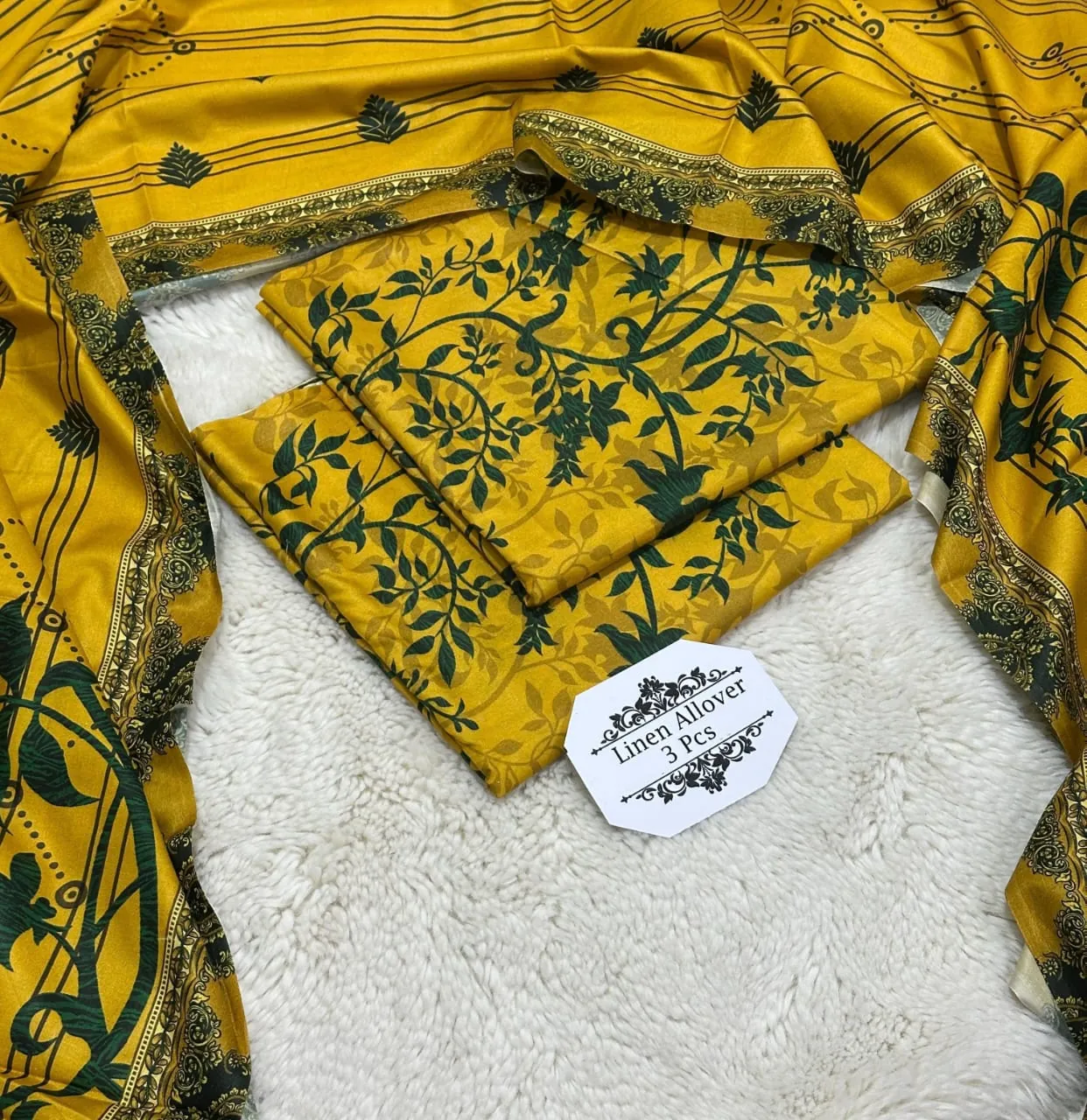 Elevate your winter wardrobe with the BONANZA Original Brand Printed Linen 3-Piece Unstitched Suit. This exquisite set features a beautiful all-over Printed Linen Shirt paired with a matching Printed Linen Dupatta and a complimentary Printed Linen Trouser, offering a complete and sophisticated look. Perfect for everyday wear, office wear, or casual gatherings, the breathable and soft Linen fabric ensures both warmth and comfort throughout the season.