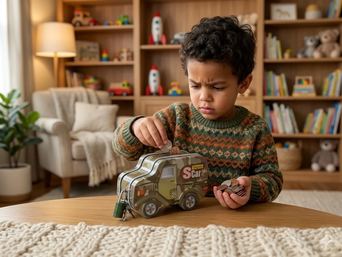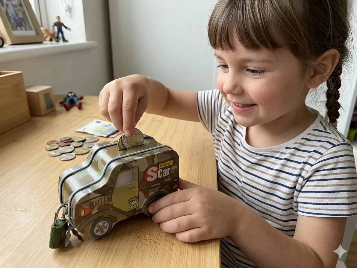Camouflage Truck Metal Piggy Bank with Lock and Keys - Secure Coin Savings Box for Kids