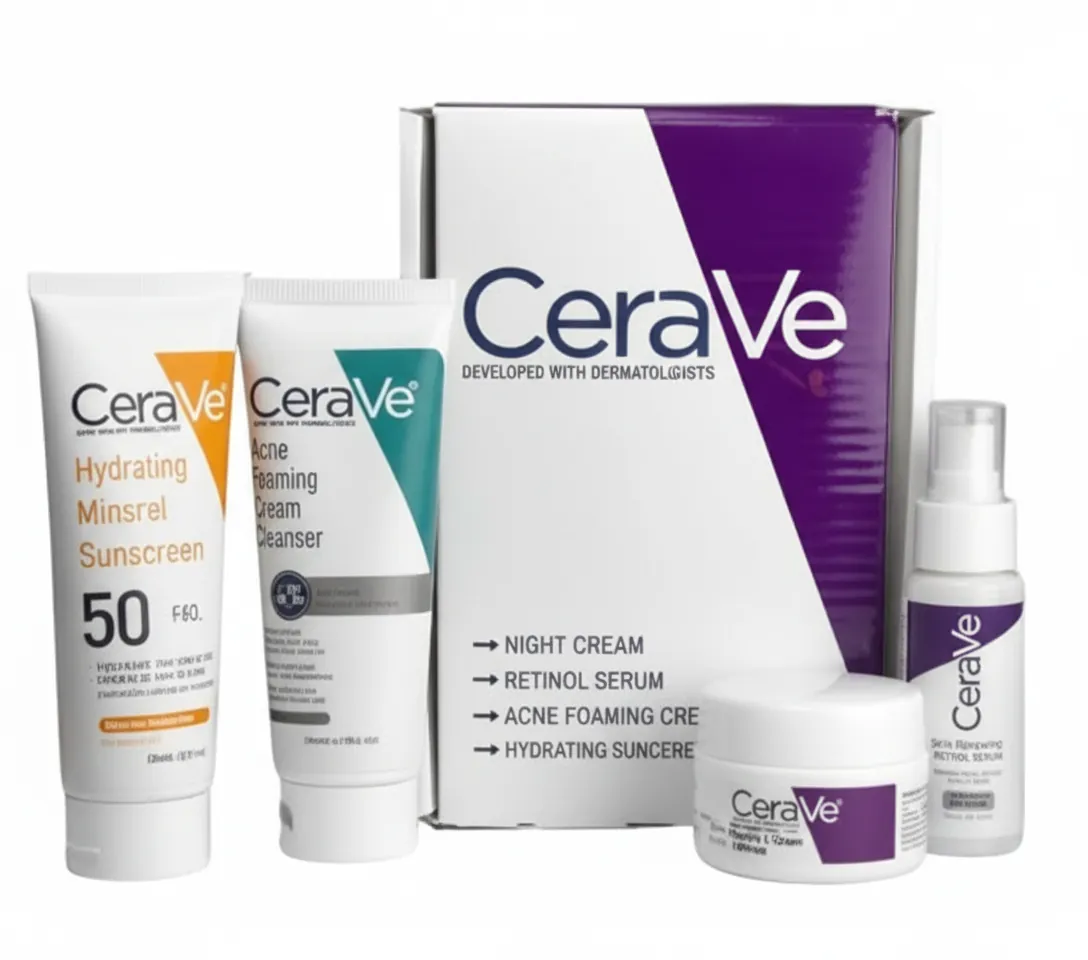 CeraVe 4-in-1 Skincare Kit: Hydrating Cleanser, Night Cream, Mineral SPF 50 & Retinol Serum | Anti-Aging & Barrier Repair
