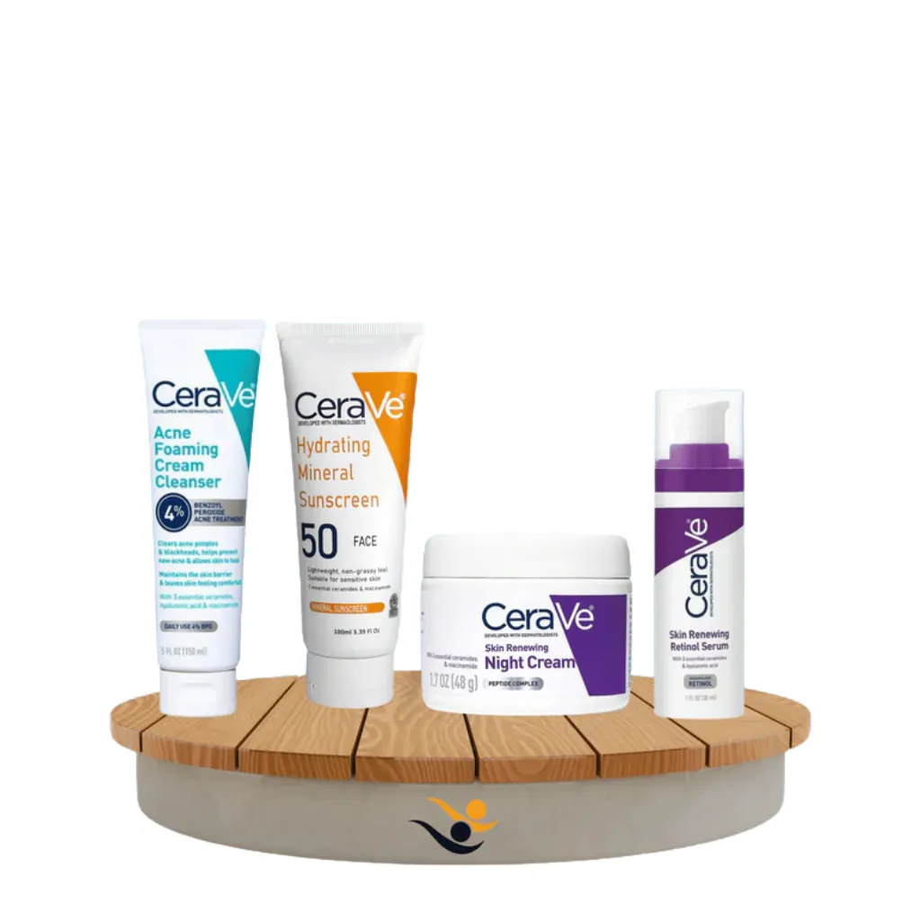 Each product is formulated with 3 Essential Ceramides to help restore and maintain the skinβs natural barrier. Start your routine with the gentle yet effective Acne Foaming Cream Cleanser to clear dirt and excess oil. Follow with the Skin Renewing Retinol Serum to smooth fine lines and improve texture. Protect your skin during the day with the Hydrating Mineral Sunscreen SPF 50, a non-greasy, 100% mineral-based formula. Complete your nightly routine with the Skin Renewing Night Cream infused with biomimetic peptides and Hyaluronic Acid for overnight anti-aging repair and intense hydration. Suitable for all skin types, including sensitive and acne-prone skin.