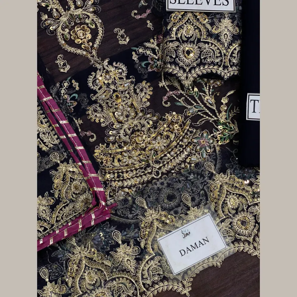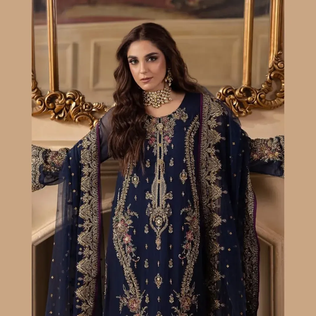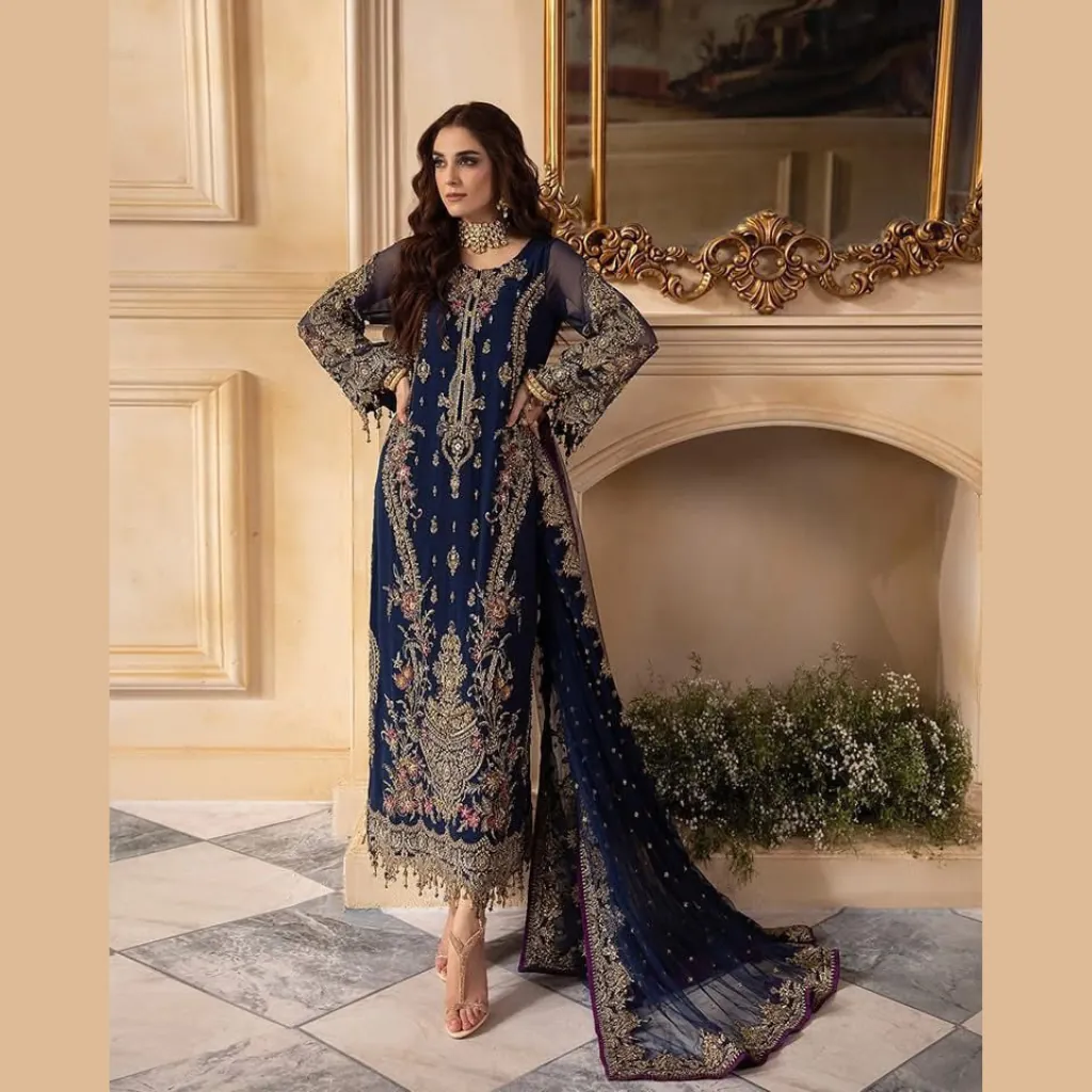 The Charizma Luxury Wedding Unstitched 3PC Collection brings a perfect blend of tradition and modern elegance, designed exclusively for weddings and festive occasions. Crafted on premium chiffon viscose fabric, this attire showcases hand-embellished embroidery, sequence moti work, and luxurious detailing to make you stand out at every event.