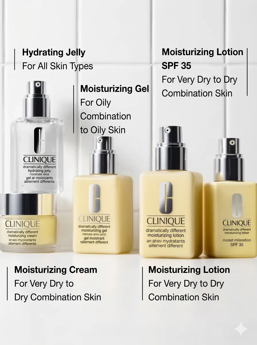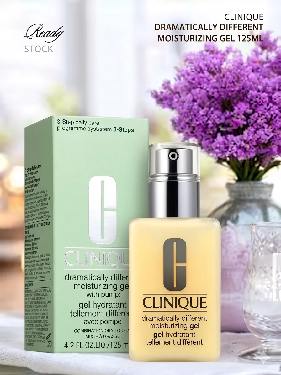 Experience dramatically different skin with Clinique's iconic Moisturizing Gel, specifically formulated for oily to combination skin types. This refreshing, lightweight gel delivers 8 hours of dermatologist-developed hydration, leaving your skin feeling soft, smooth, and balanced. The oil-free formula absorbs quickly without a greasy residue, making it an ideal step in your daily skincare routine. Presented in a convenient 125ml bottle with a pump, it ensures precise and hygienic dispensing. Part of Clinique's renowned 3-step daily care program, this gel helps to strengthen skin's moisture barrier, promoting a healthier, more radiant complexion.