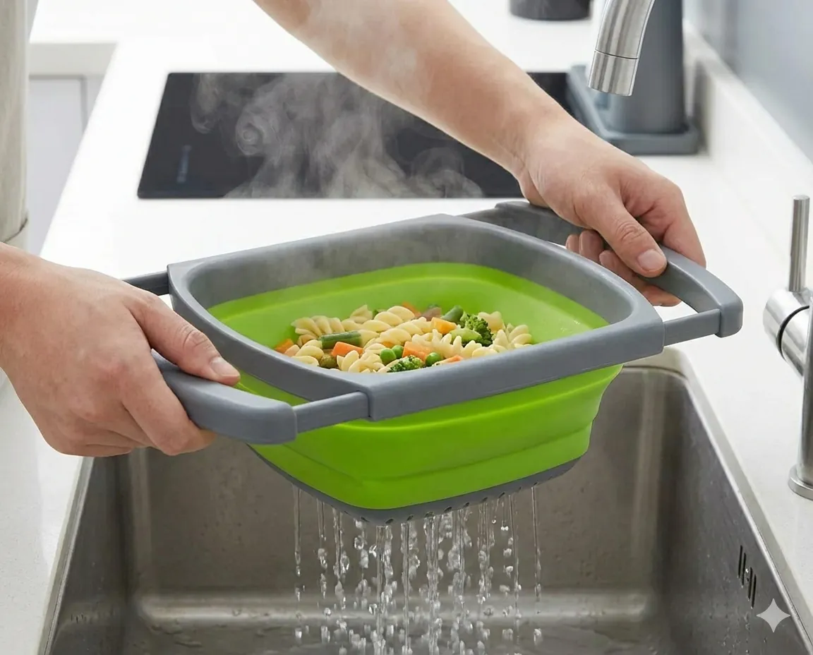 Crafted from high-quality, food-grade silicone and BPA-free plastic, it is heat-resistant and dishwasher-safe, making it durable enough for boiling pasta and easy enough to clean after a busy meal. Whether you are washing fresh berries, straining heavy potatoes, or air-drying utensils, its evenly spaced drainage holes ensure quick water flow every time.