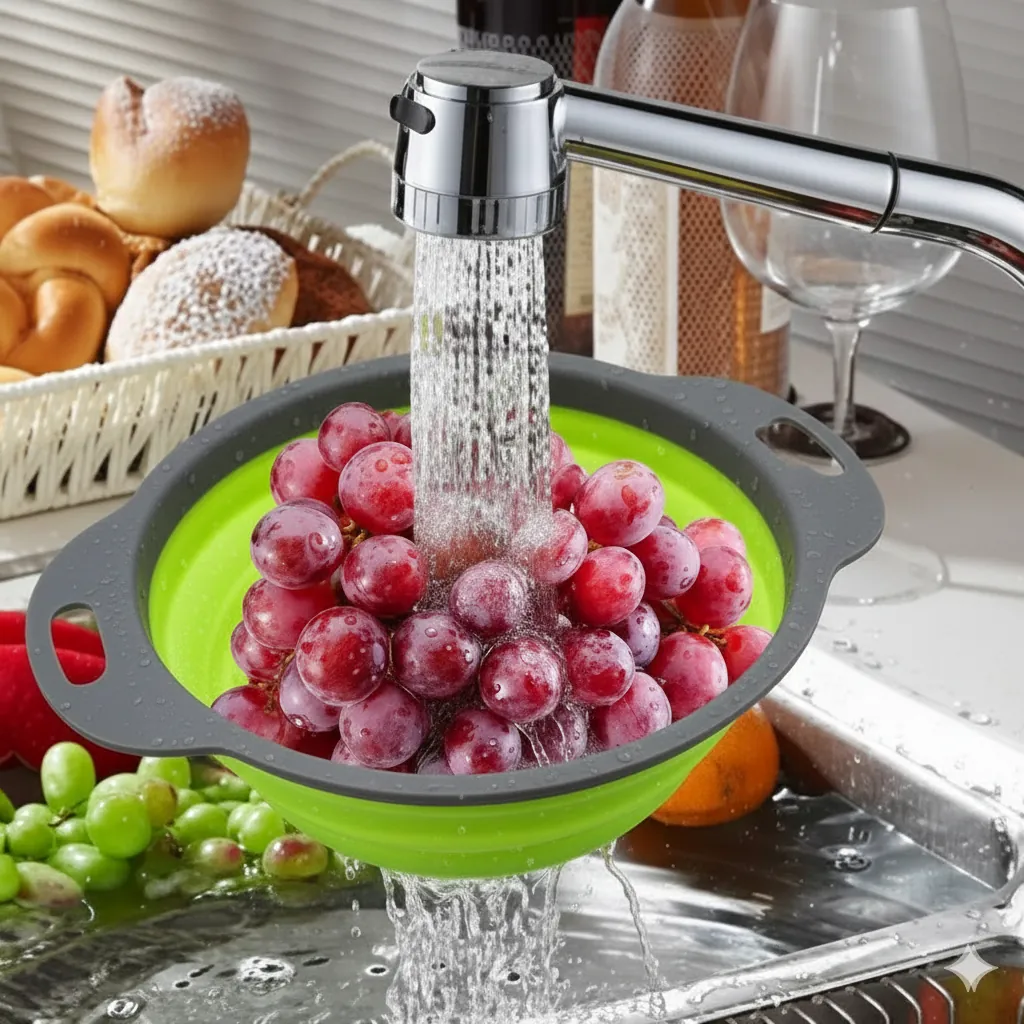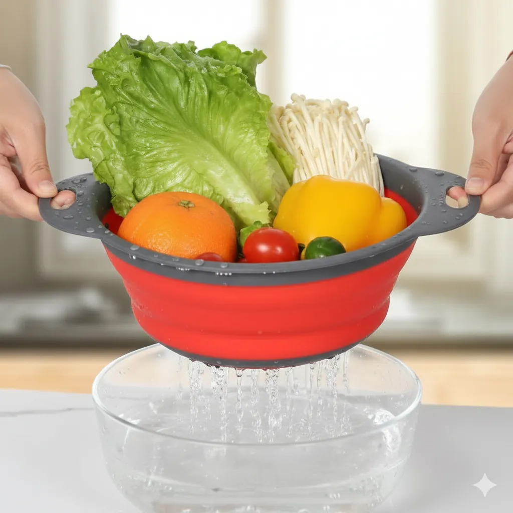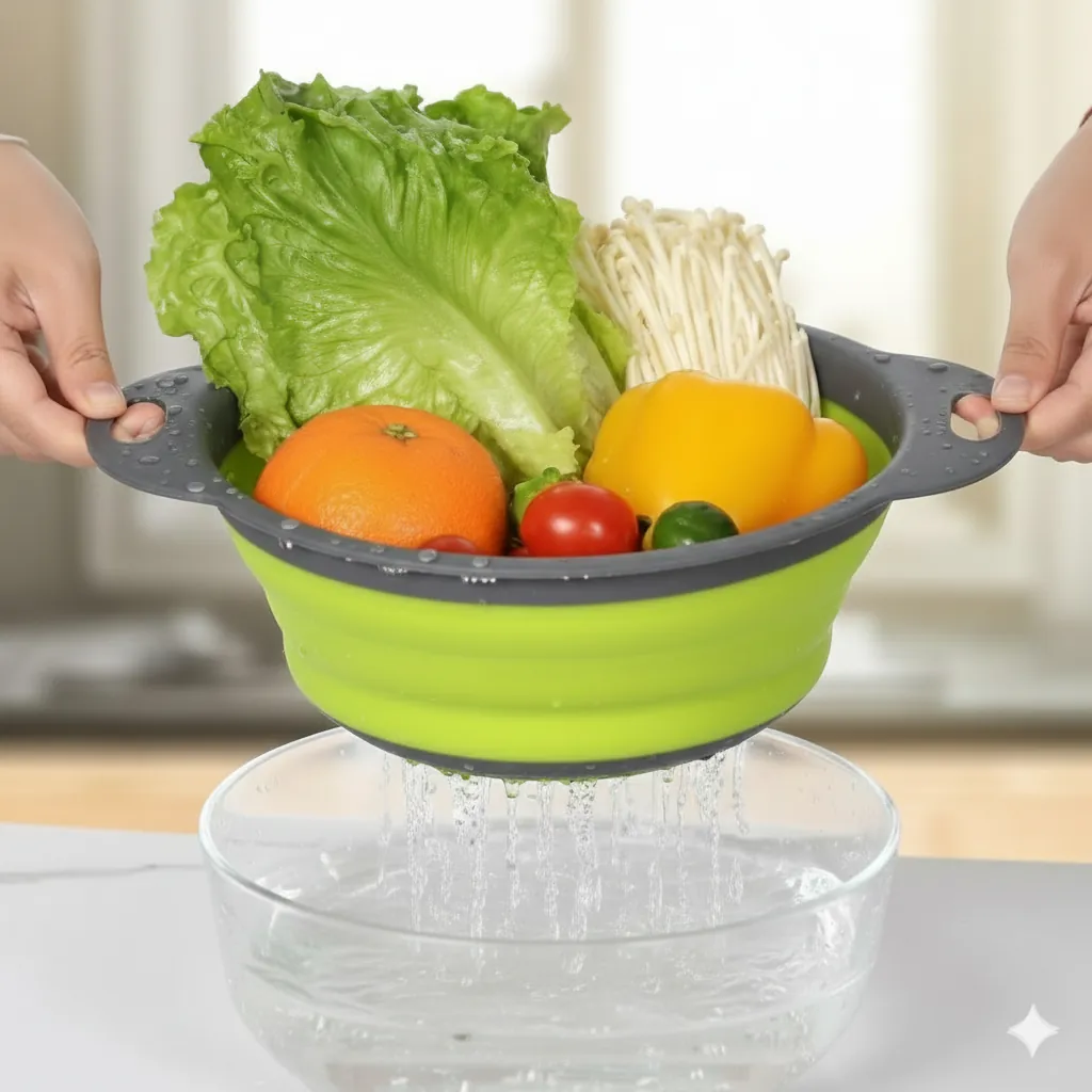 Simplify your meal prep and reclaim your cabinet space with our Multi-Purpose Collapsible Kitchen Basket. Crafted from high-quality, food-grade silicone and BPA-free plastic, this colander is designed for the modern, efficient kitchen.