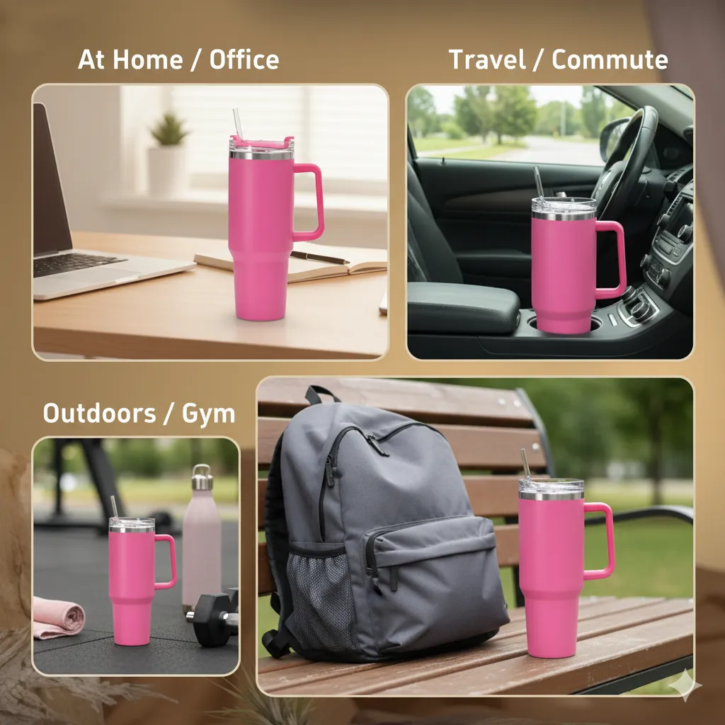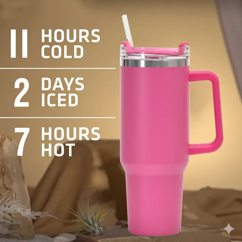 Introducing the ultimate companion for all-day hydration: the 40 oz Insulated Stainless Steel Tumbler with Handle and Straw Lid. Designed for maximum convenience and superior temperature retention, this large-capacity travel mug is perfect for commuting, gym sessions, road trips, or just keeping at your desk.