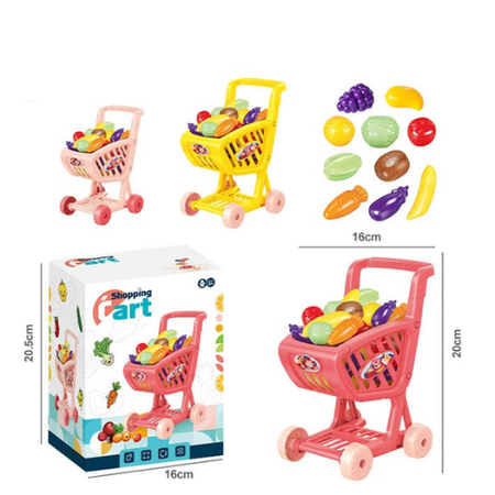 Turn your child’s playtime into a fun and educational experience with this Kids Shopping Cart Toy Set. Designed for children aged 3 and above, this adorable set includes a brightly colored shopping trolley and a collection of realistic-looking fruits and vegetables to enhance imaginative roleplay.