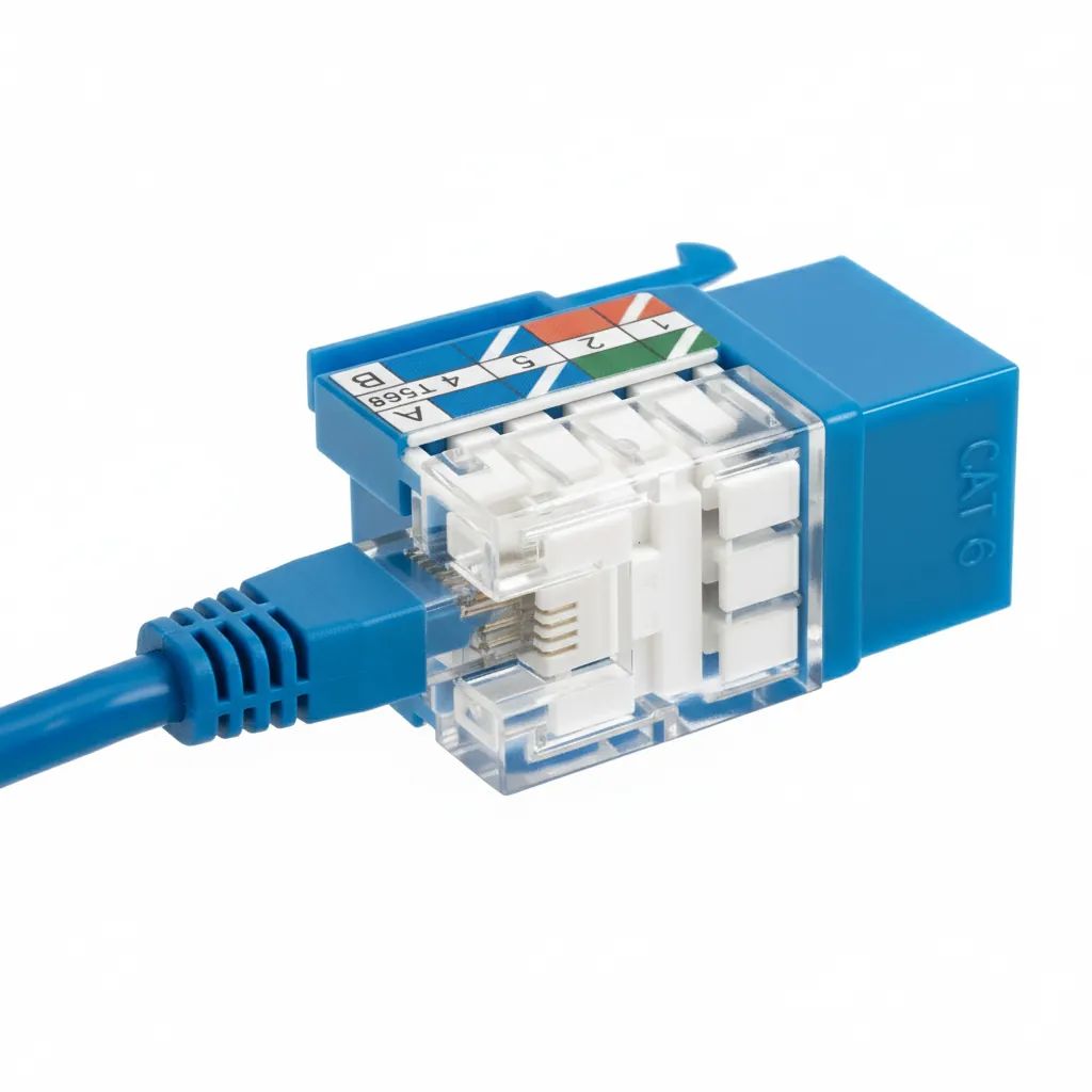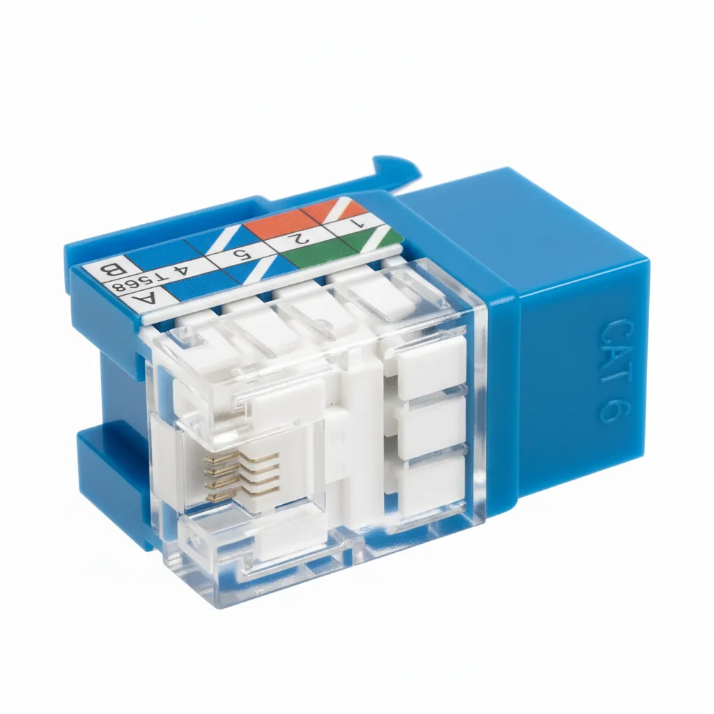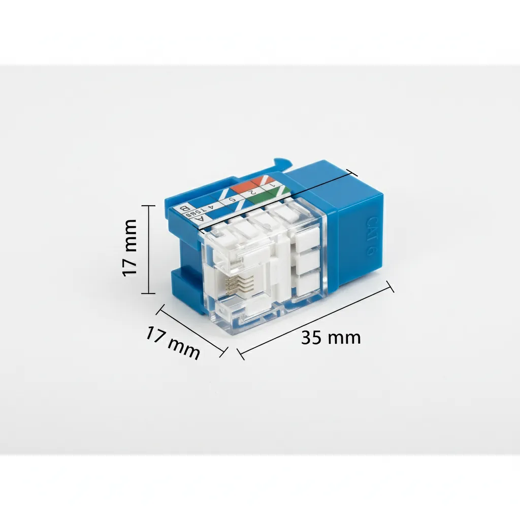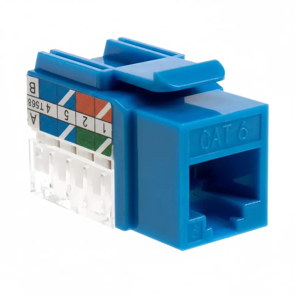 Achieve quick and reliable Cat6 connections with the COMMSCOPE Tool-less Keystone Jack in Blue. Features 50-micron gold plating, dual 568-A/B color codes, and simple 110 IDC tool-free termination for professional network installation. The COMMSCOPE Cat6 Tool-less Keystone Jack delivers ultimate performance and simplicity for your network installation needs. Engineered for both home and large-scale office networks, this Unshielded Twisted Pair (UTP) jack provides a robust, high-speed connection designed to meet or exceed industry standards.