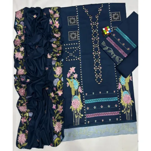 Adding to its charm is the embroidered dhanak shawl, which provides warmth while maintaining an elegant look for the season. This luxurious unstitched ensemble is perfect for festive gatherings, family events, and formal occasions where style and comfort are equally important. With its timeless design and premium quality, this suit ensures you stand out with confidence and grace.