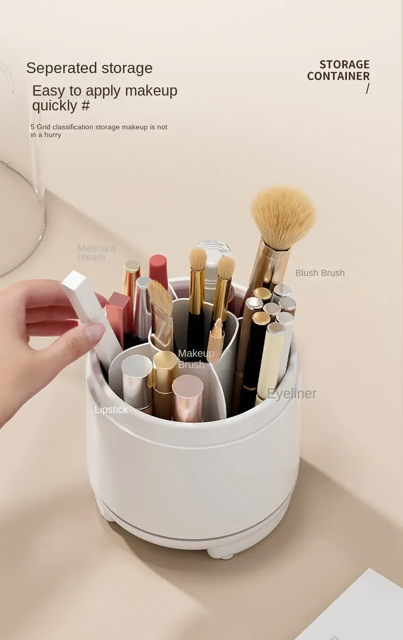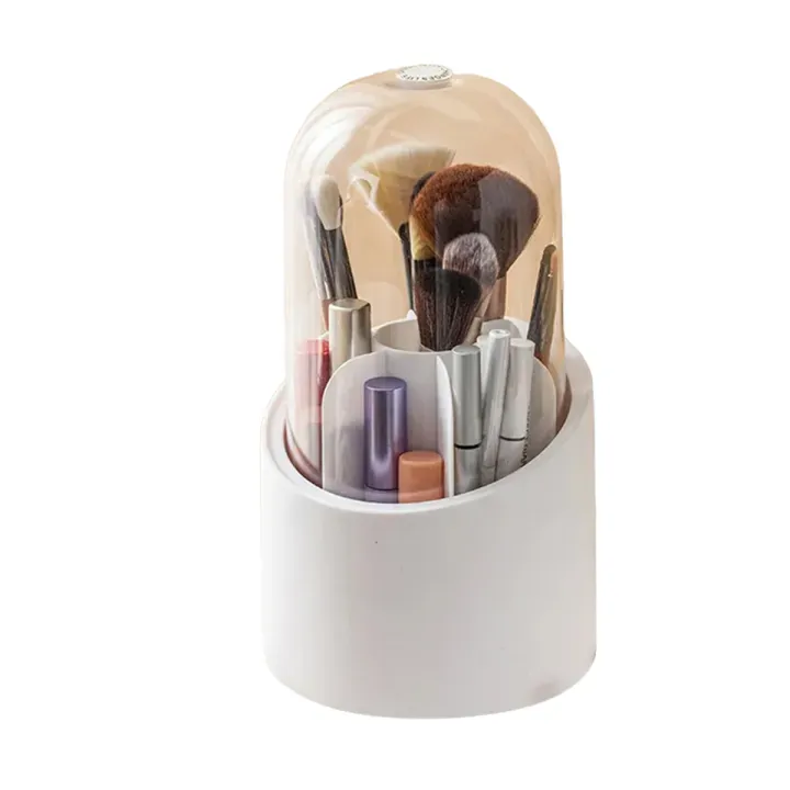 It's a multi-purpose storage solutionβperfect for the beauty enthusiast to keep makeup brushes upright, clean, and separated, or for students and professionals to organize pens, pencils, and other small stationery items on a desk. The compact, rounded design saves space while the stable base with feet ensures it won't tip over.