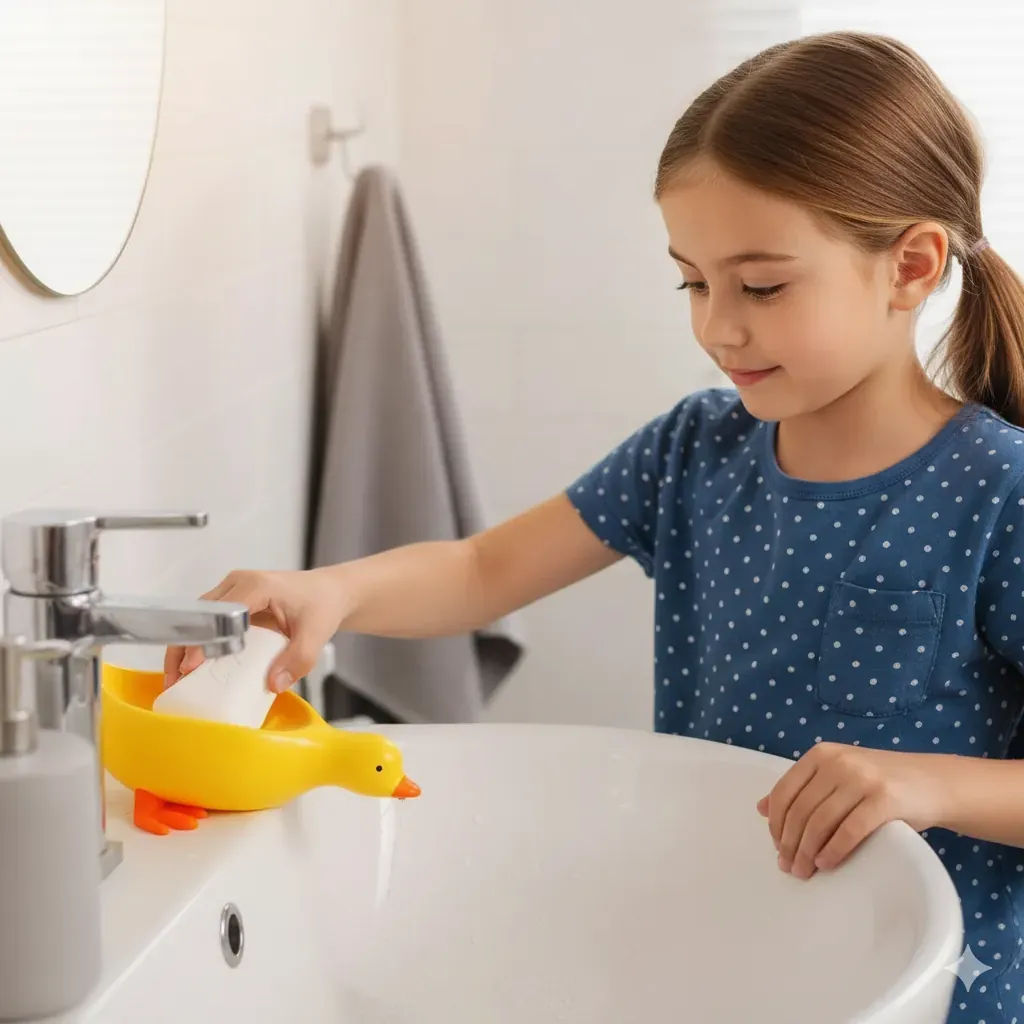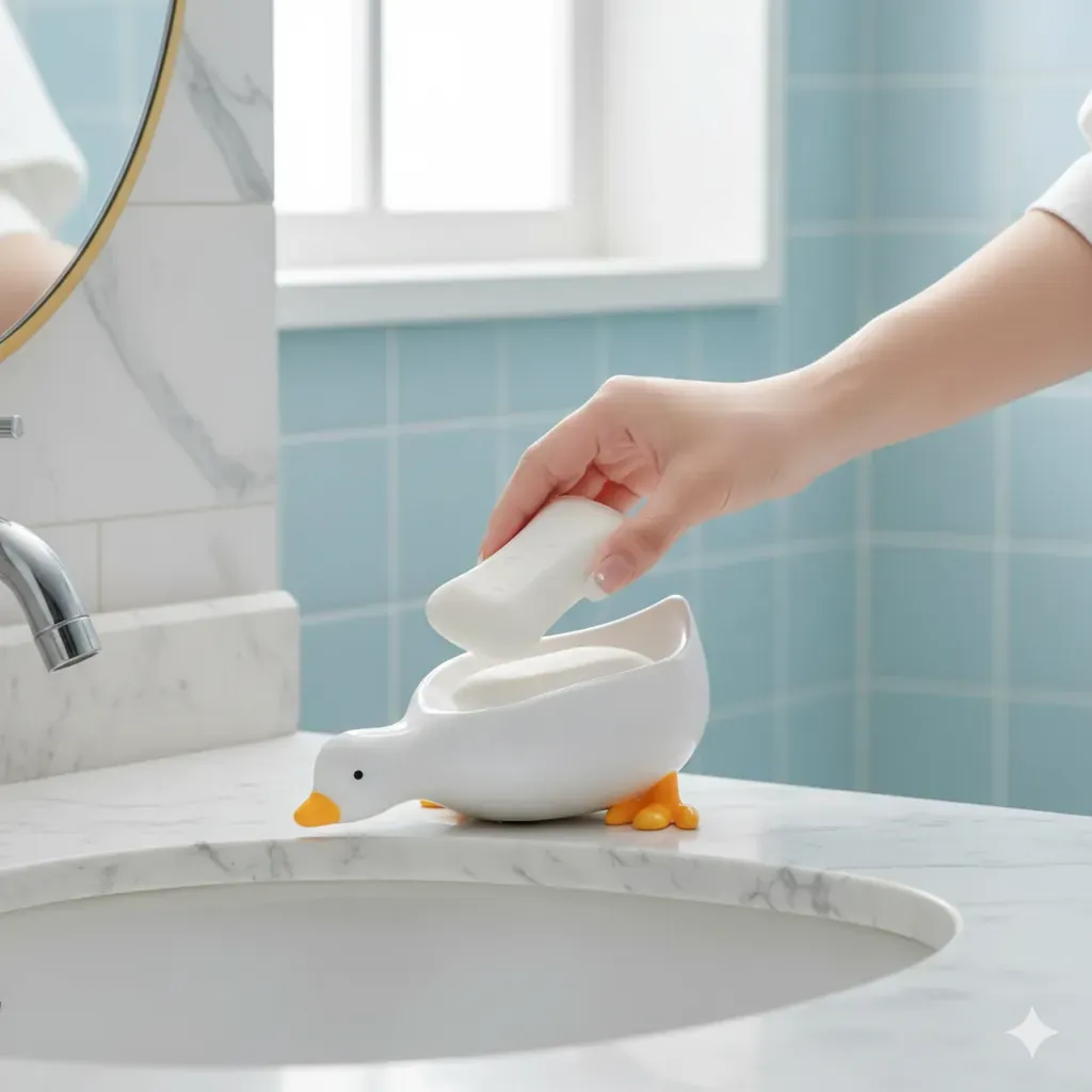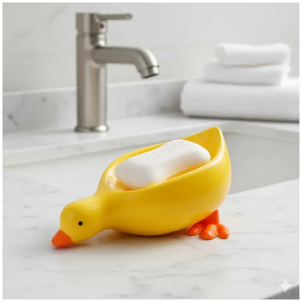 Add a touch of fun and practicality to your home with this adorable Duck Shape Soap Tray. Made from high-quality, eco-friendly plastic, this soap dish is not only durable but also completely waterproof. Its innovative 45-degree angle draining design ensures that excess water drains away automatically, keeping your soap dry and extending its life. This feature helps prevent your soap from dissolving and wasting away.This tray is not just for soap; it's also a great organizer for sponges, scrubbers, or other small items. The cute yellow duck design will appeal to all ages and adds a cheerful accent to any space. The lightweight yet sturdy build makes it easy to move from one place to another. Simply place it on your sink, shower ledge, or bathtub rim to keep your area tidy and stylish.