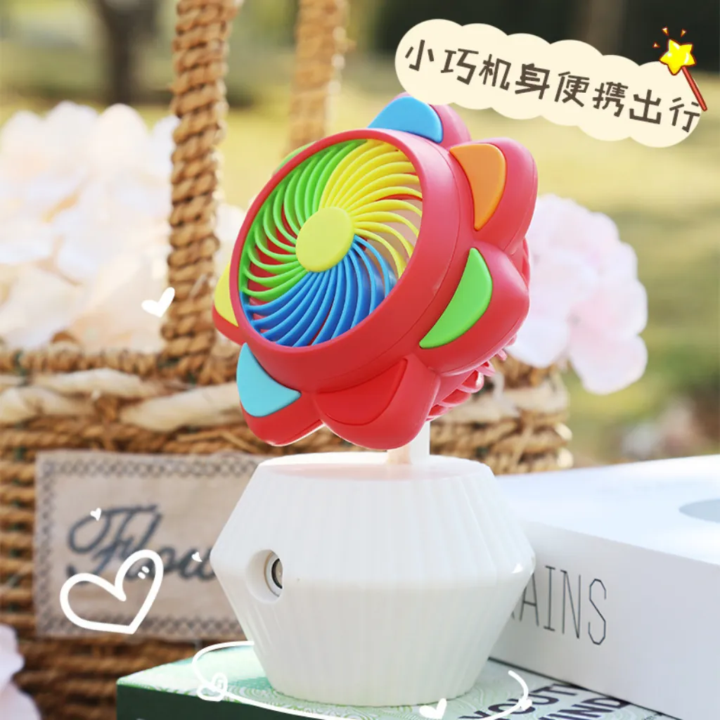 The Cute Rainbow Portable USB Fan is a delightful and practical cooling solution designed for everyday comfort. Featuring vibrant rainbow-colored blades and a playful flower-shaped body in blue with multicolored accents, this mini fan combines style with functionality. It offers three adjustable wind speeds to customize your airflow—from a gentle breeze to stronger cooling—making it ideal for desks, travel, or outdoor activities. Powered by USB charging, it ensures long-lasting battery life for continuous use without the need for constant plugging in. Lightweight and portable, this fan fits easily into bags or stands stably on any surface, providing a fun, efficient way to stay cool while adding a touch of whimsy to your space. Perfect for kids, offices, or personal use, it's a must-have gadget for hot days.