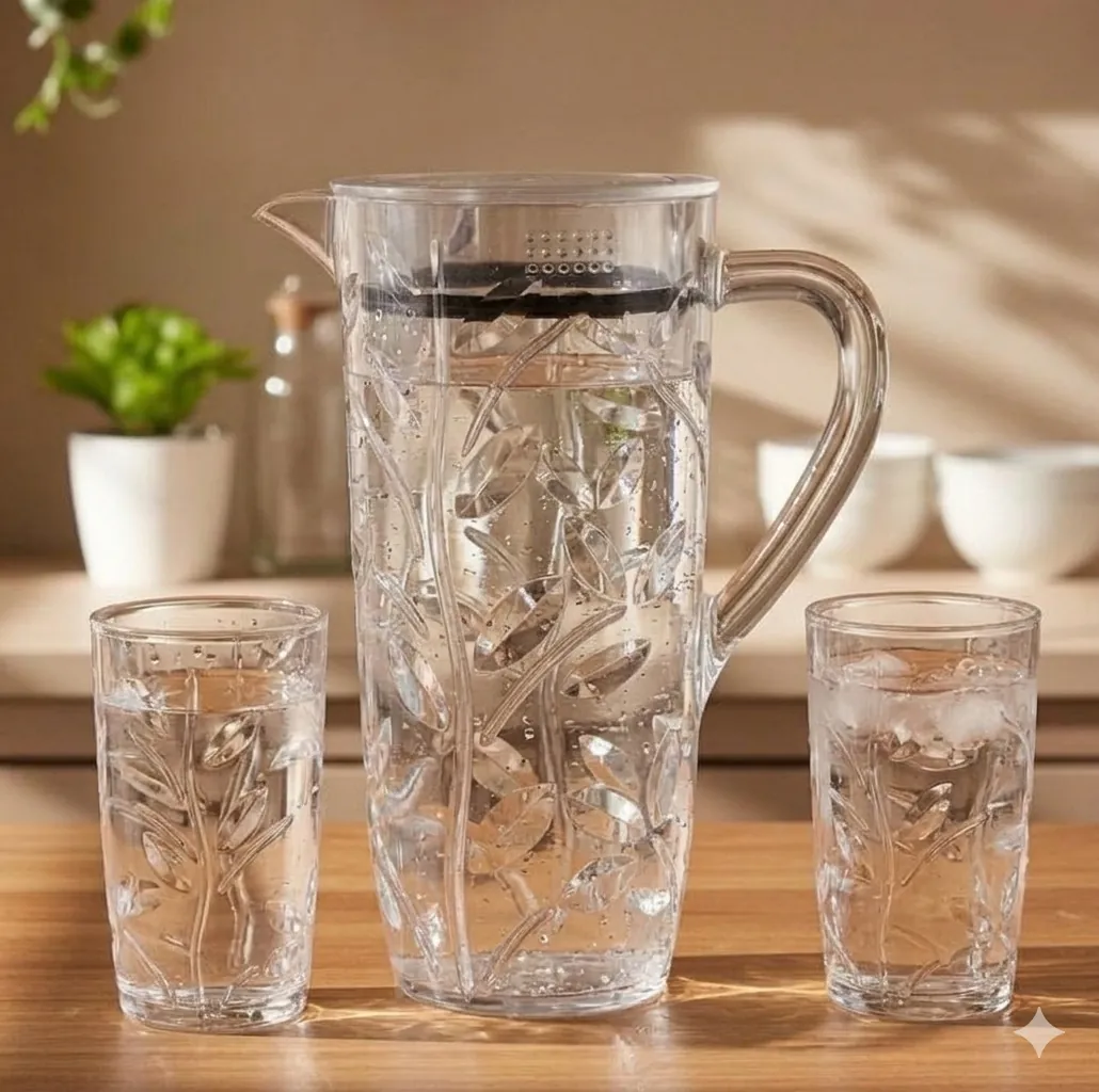 Whether you're hosting a dinner, serving guests, or simply enjoying a refreshing drink, the AC110 acrylic jug is designed to enhance convenience and presentation. It’s a must-have addition to any modern kitchen setup.AC110 Acrylic Jug Leaves Cut Price in Pakistan