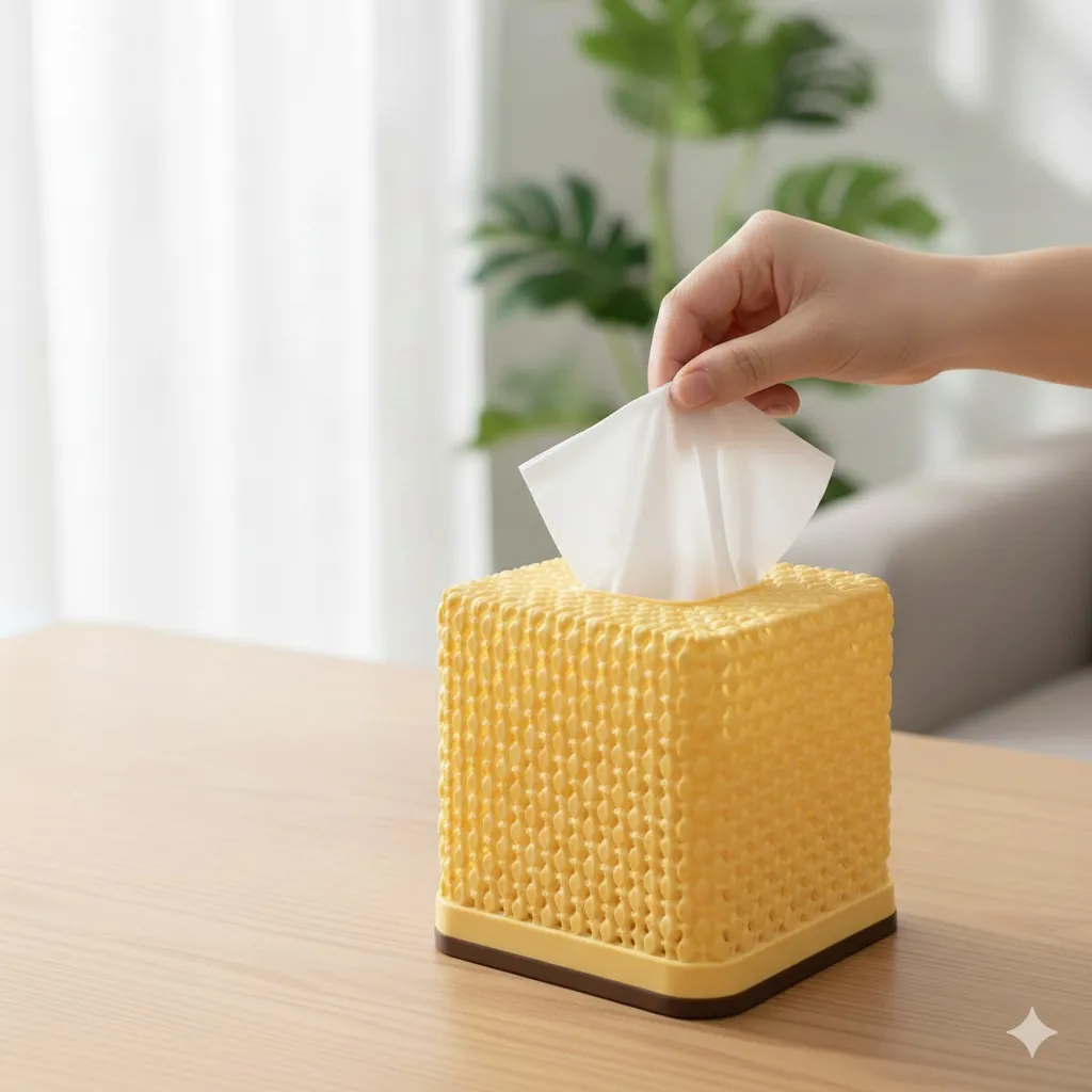 Elevate your home organization with our Premium Woven-Pattern Tissue Box Dispenser. Tired of unsightly cardboard tissue boxes clashing with your interior design? This stylish cover offers a seamless blend of modern utility and classic texture. Designed with a beautiful 3D lattice pattern that mimics traditional rattan, it provides a high-end look while offering the practical benefits of high-quality, moisture-resistant plastic.