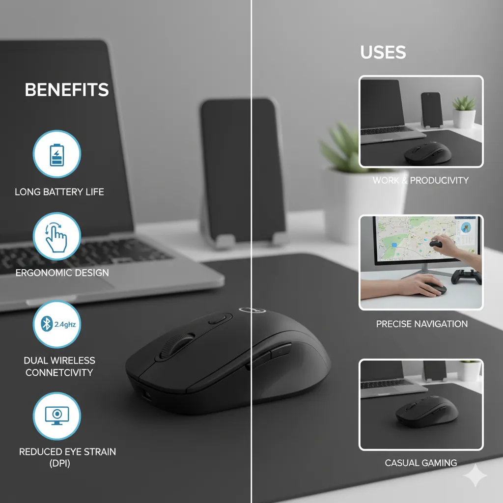 - 2.4GHz Wireless: Offers a fast, stable, and instant connection via a compact USB receiver. Ideal for desktops or for maintaining a dedicated link without any pairing delay.