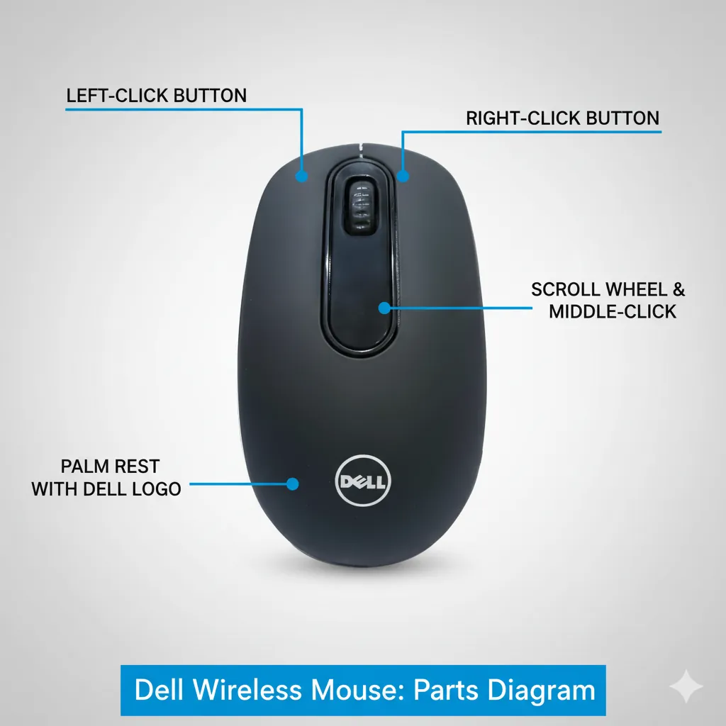 DELL WM428 Wireless Optical Mouse (High Copy) | Compact 2.4GHz RF USB Dongle Connectivity | 3-Button Ambidextrous Design for Laptop & Desktop
