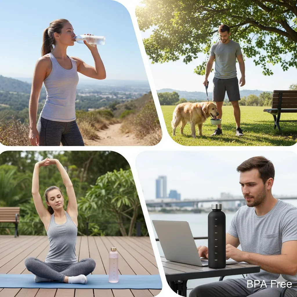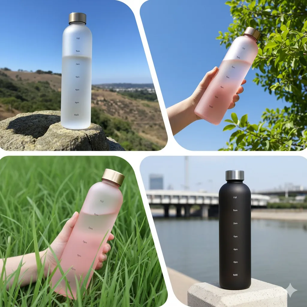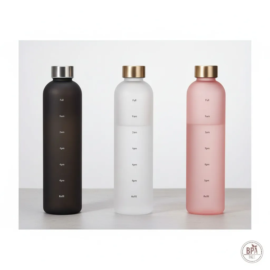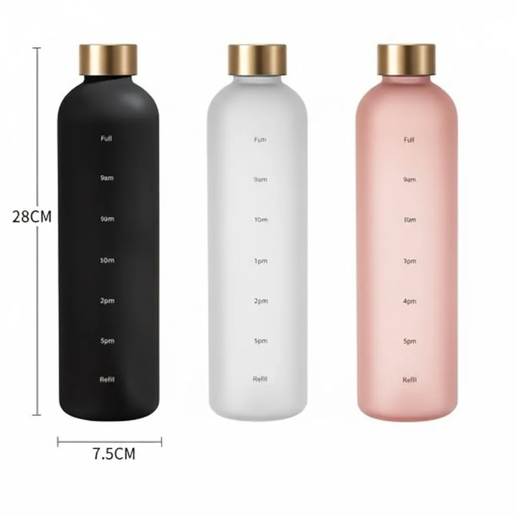 Boost your daily water intake with this functional and stylish Time Marked Hydration Water Bottle. Designed to keep you on track, the bottle features time markers to remind you to drink water throughout the day, ensuring optimal hydration.